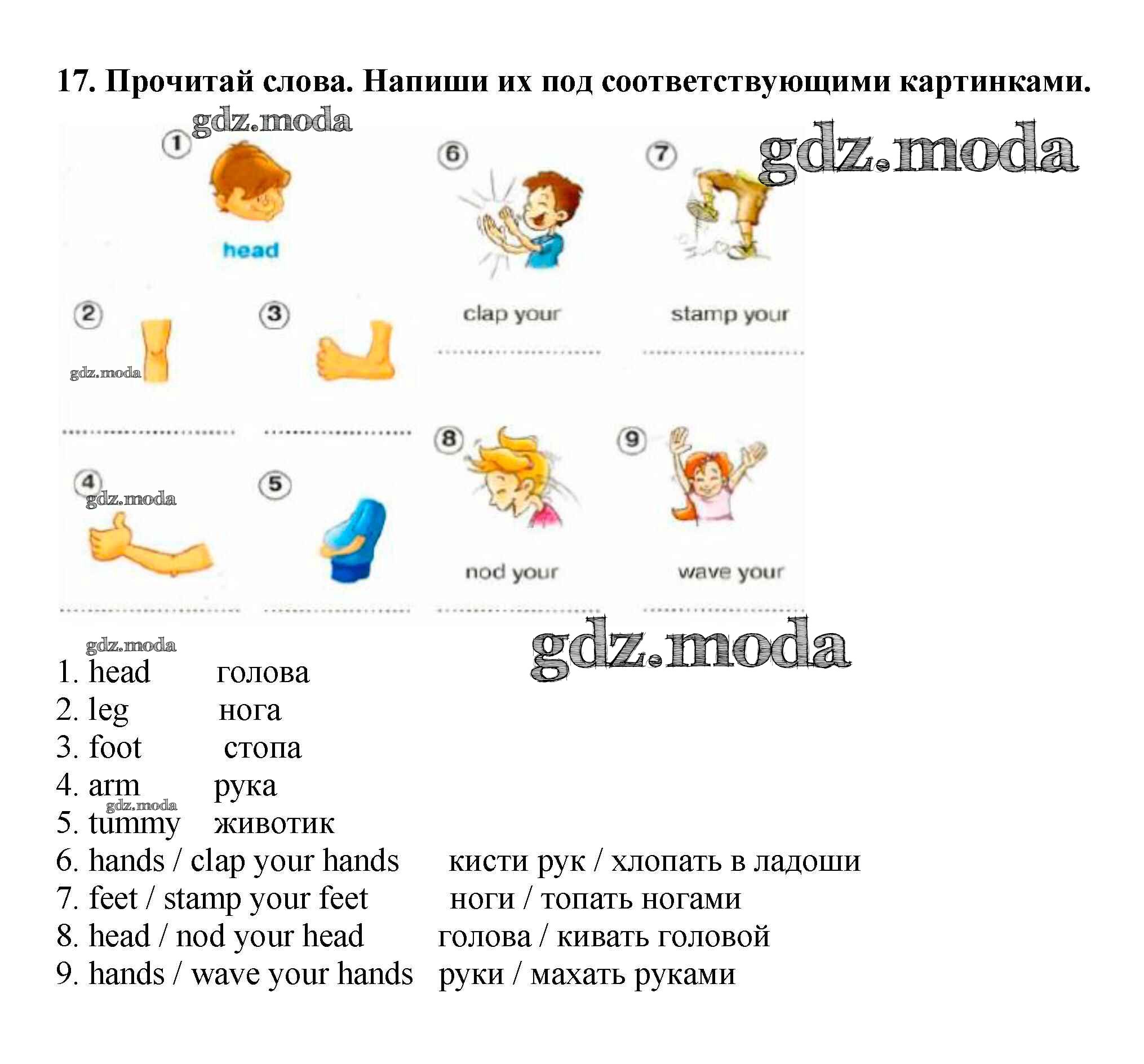 ГДЗ решение к заданию № 17 Английский язык 2 класс рабочая тетрадь Starlight Баранова К.М. Просвещение 2016 Часть 1, Часть 2 Углубленный уровень ФГОС бесплатно на гдз.мода!