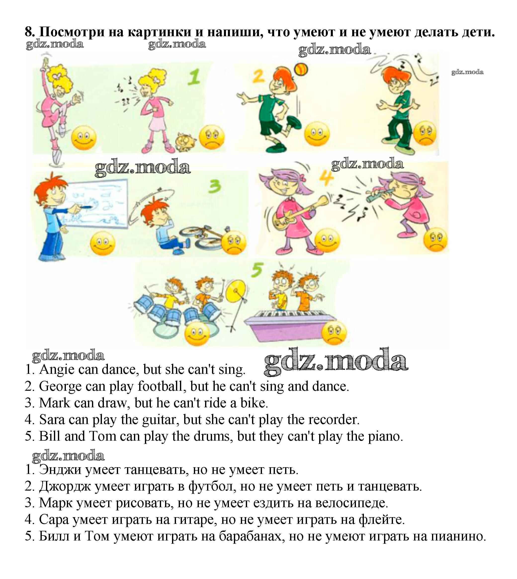 ГДЗ решение к заданию № 8 Английский язык 2 класс рабочая тетрадь Starlight Баранова К.М. Просвещение 2016 Часть 1, Часть 2 Углубленный уровень ФГОС бесплатно на гдз.мода!