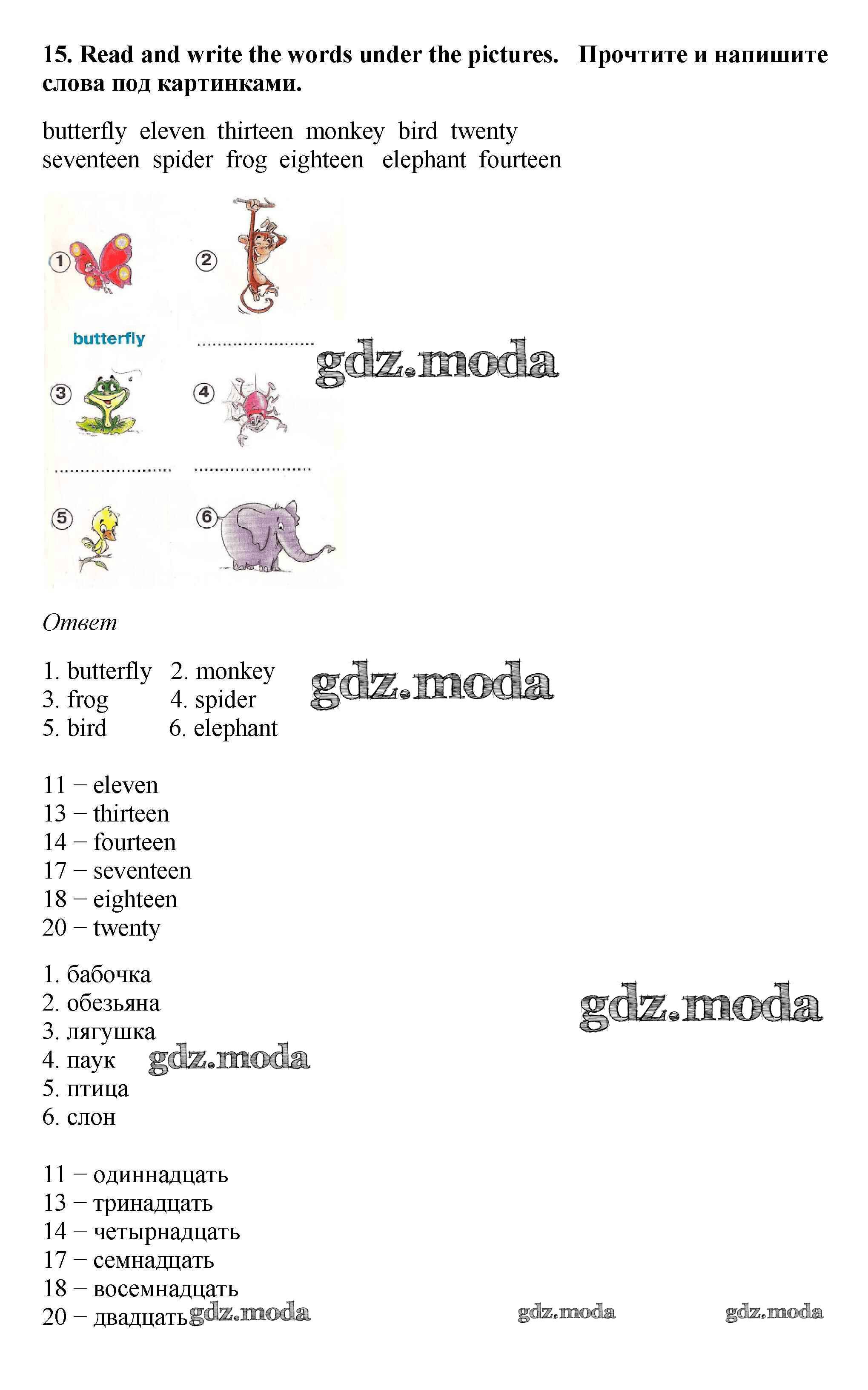 ГДЗ решение к заданию № 15 Английский язык 2 класс рабочая тетрадь Starlight Баранова К.М. Просвещение 2016 Часть 1, Часть 2 Углубленный уровень ФГОС бесплатно на гдз.мода!