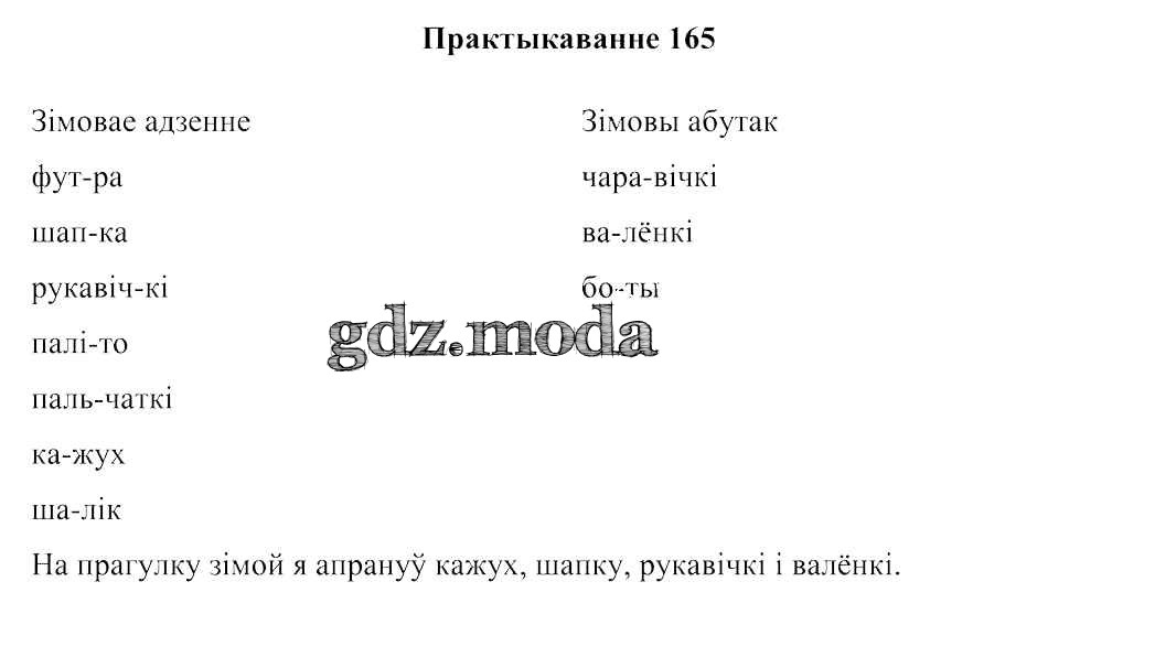 ГДЗ решение к заданию № 165 Беларуская мова:2 клас Свірыдзенка В.І. Национальный институт образования 2016 Часть 1, Часть 2 бесплатно на гдз.мода!
