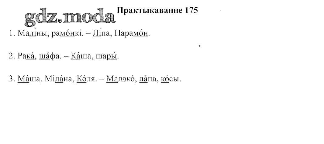 ГДЗ решение к заданию № 175 Беларуская мова:2 клас Свірыдзенка В.І. Национальный институт образования 2016 Часть 1, Часть 2 бесплатно на гдз.мода!