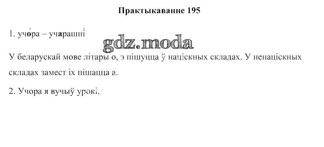 ГДЗ решение к заданию № 195 Беларуская мова:2 клас Свірыдзенка В.І. Национальный институт образования 2016 Часть 1, Часть 2 бесплатно на гдз.мода!