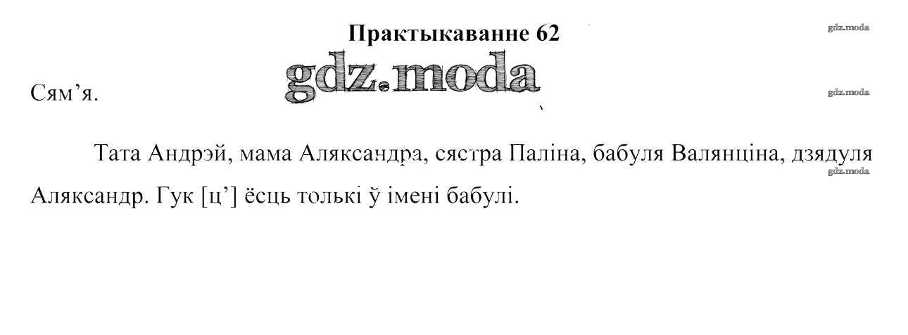 ГДЗ решение к заданию № 62 Беларуская мова:2 клас Свірыдзенка В.І. Национальный институт образования 2016 Часть 1, Часть 2 бесплатно на гдз.мода!