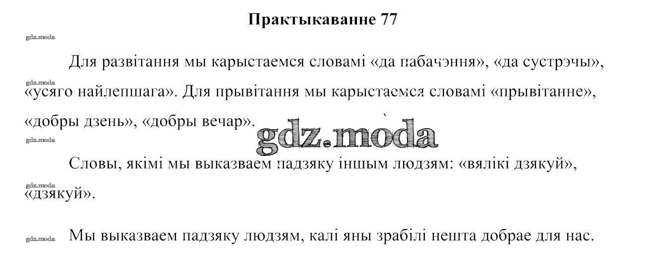 ГДЗ решение к заданию № 77 Беларуская мова:2 клас Свірыдзенка В.І. Национальный институт образования 2016 Часть 1, Часть 2 бесплатно на гдз.мода!