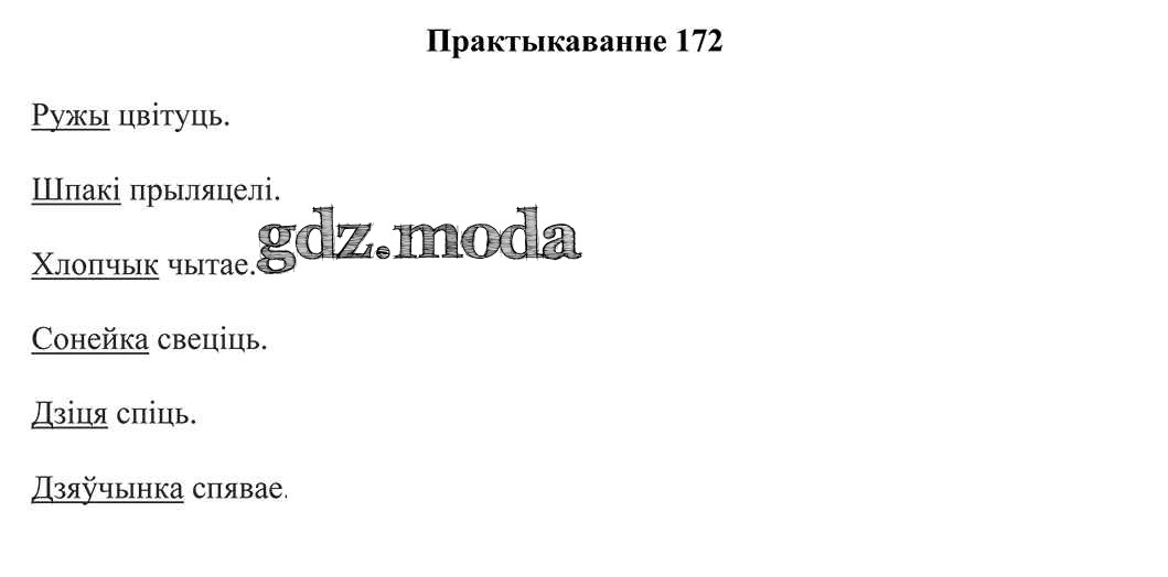 ГДЗ решение к заданию № 172 Беларуская мова:2 клас Свірыдзенка В.І. Национальный институт образования 2016 Часть 1, Часть 2 бесплатно на гдз.мода!