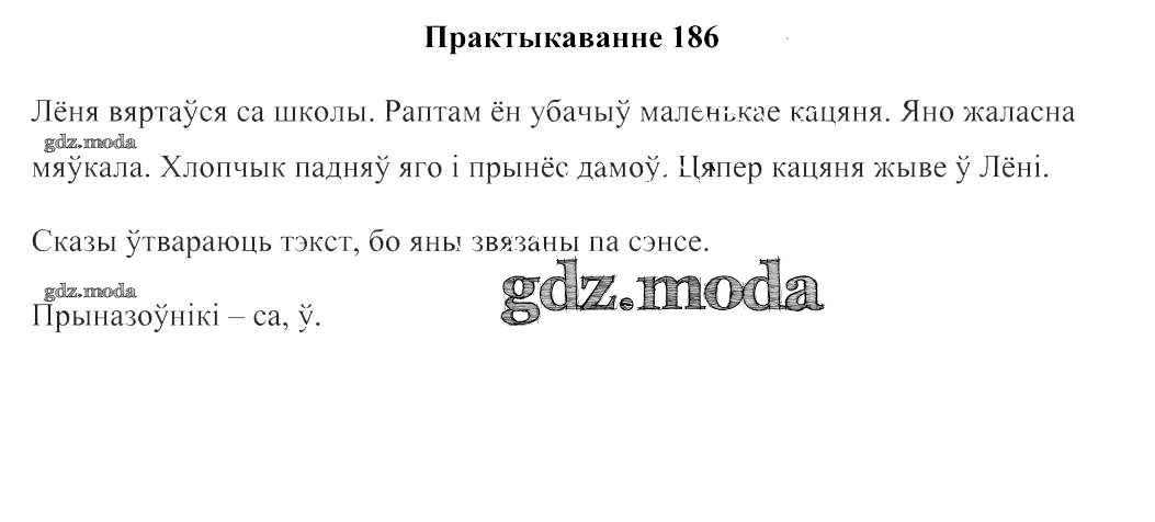 ГДЗ решение к заданию № 186 Беларуская мова:2 клас Свірыдзенка В.І. Национальный институт образования 2016 Часть 1, Часть 2 бесплатно на гдз.мода!
