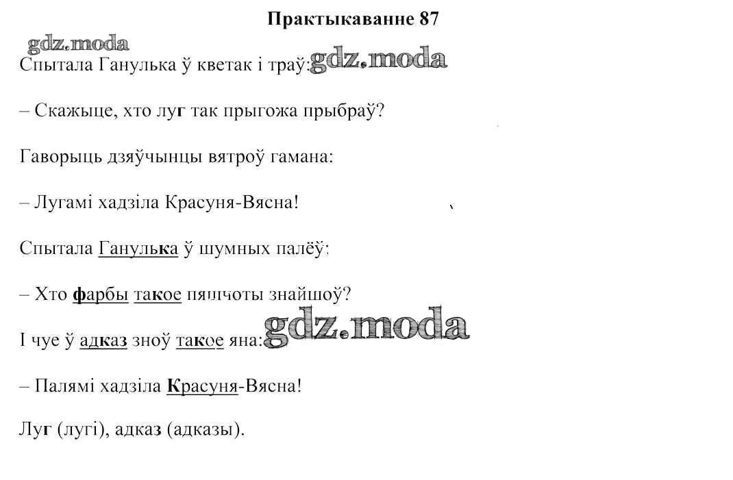 ГДЗ решение к заданию № 87 Беларуская мова:2 клас Свірыдзенка В.І. Национальный институт образования 2016 Часть 1, Часть 2 бесплатно на гдз.мода!