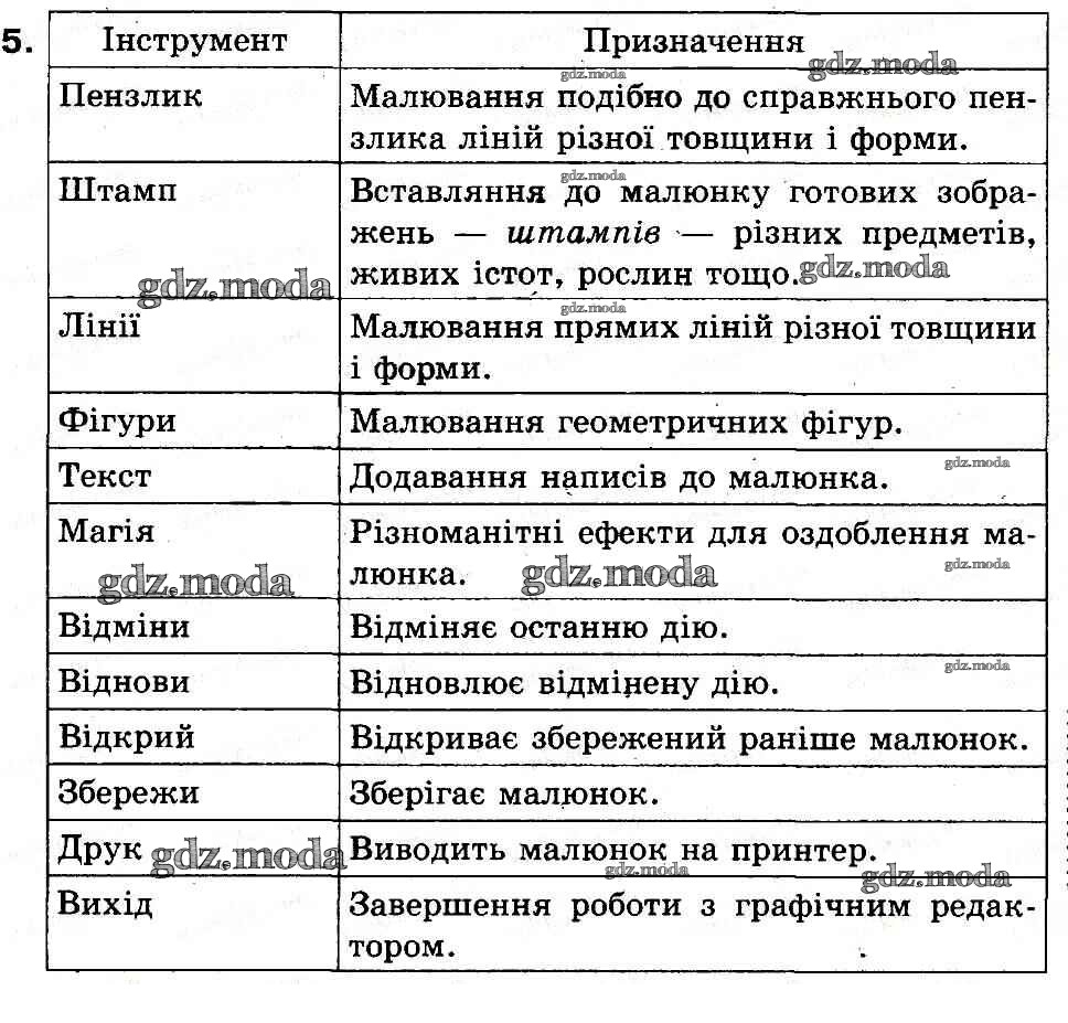 ГДЗ решение к заданию № 5 Информатика 2 класс Ломаковская Освiта 2012 бесплатно на гдз.мода!