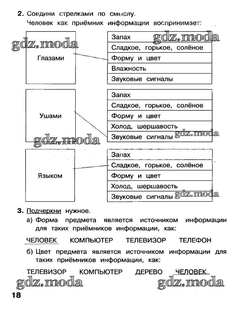ГДЗ решение к заданию № стр. 18 Информатика 2 класс рабочая тетрадь Матвеева Н.В. Бином 2012 Часть 1, Часть 2 ФГОС бесплатно на гдз.мода!
