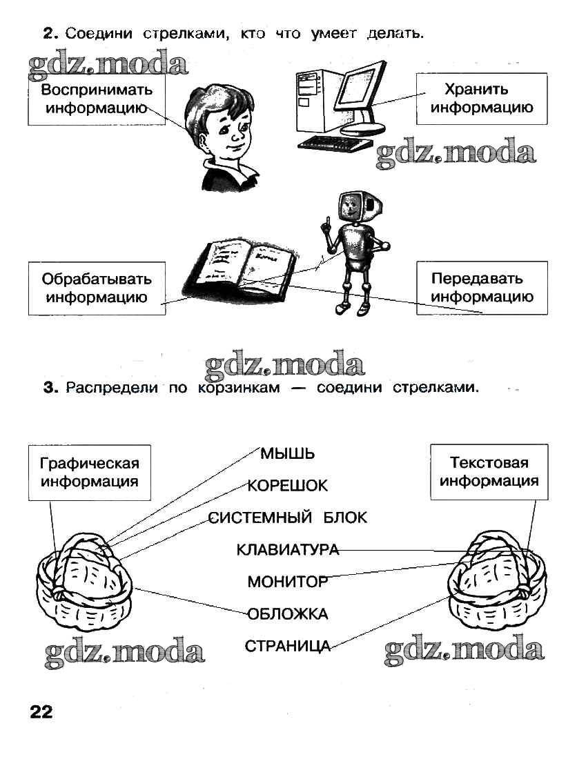 ГДЗ решение к заданию № стр. 22 Информатика 2 класс рабочая тетрадь Матвеева Н.В. Бином 2012 Часть 1, Часть 2 ФГОС бесплатно на гдз.мода!