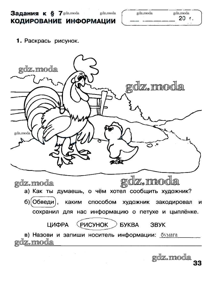 ГДЗ решение к заданию № стр. 33 Информатика 2 класс рабочая тетрадь Матвеева Н.В. Бином 2012 Часть 1, Часть 2 ФГОС бесплатно на гдз.мода!