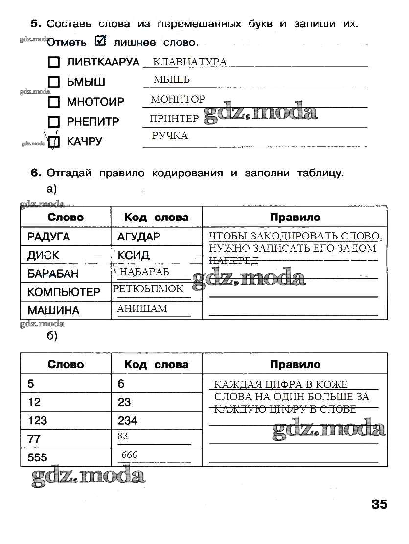 ГДЗ решение к заданию № стр. 35 Информатика 2 класс рабочая тетрадь Матвеева Н.В. Бином 2012 Часть 1, Часть 2 ФГОС бесплатно на гдз.мода!
