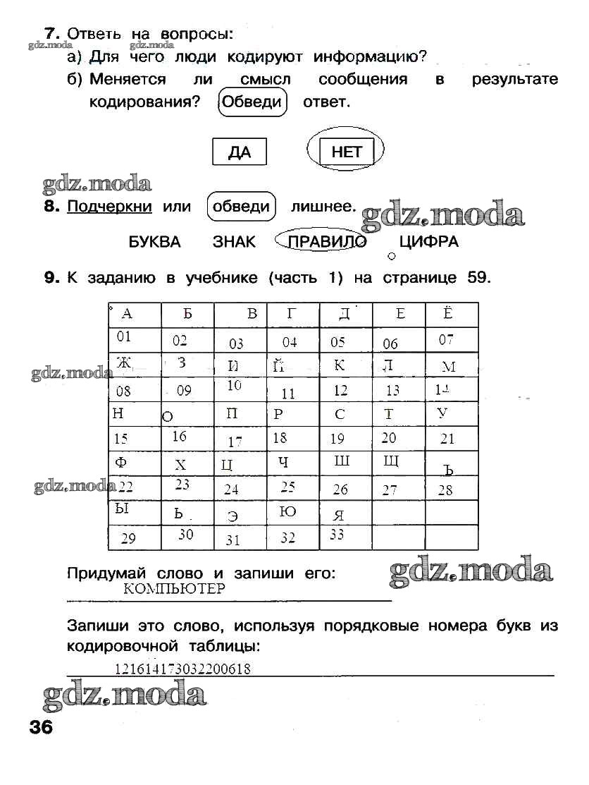 ГДЗ решение к заданию № стр. 36 Информатика 2 класс рабочая тетрадь Матвеева Н.В. Бином 2012 Часть 1, Часть 2 ФГОС бесплатно на гдз.мода!
