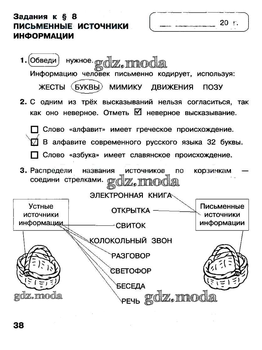 ГДЗ решение к заданию № стр. 38 Информатика 2 класс рабочая тетрадь Матвеева Н.В. Бином 2012 Часть 1, Часть 2 ФГОС бесплатно на гдз.мода!