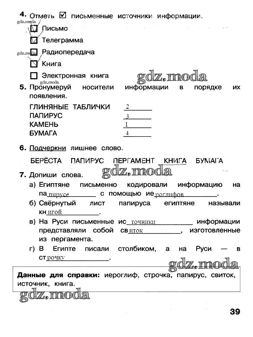 ГДЗ решение к заданию № стр. 39 Информатика 2 класс рабочая тетрадь Матвеева Н.В. Бином 2012 Часть 1, Часть 2 ФГОС бесплатно на гдз.мода!