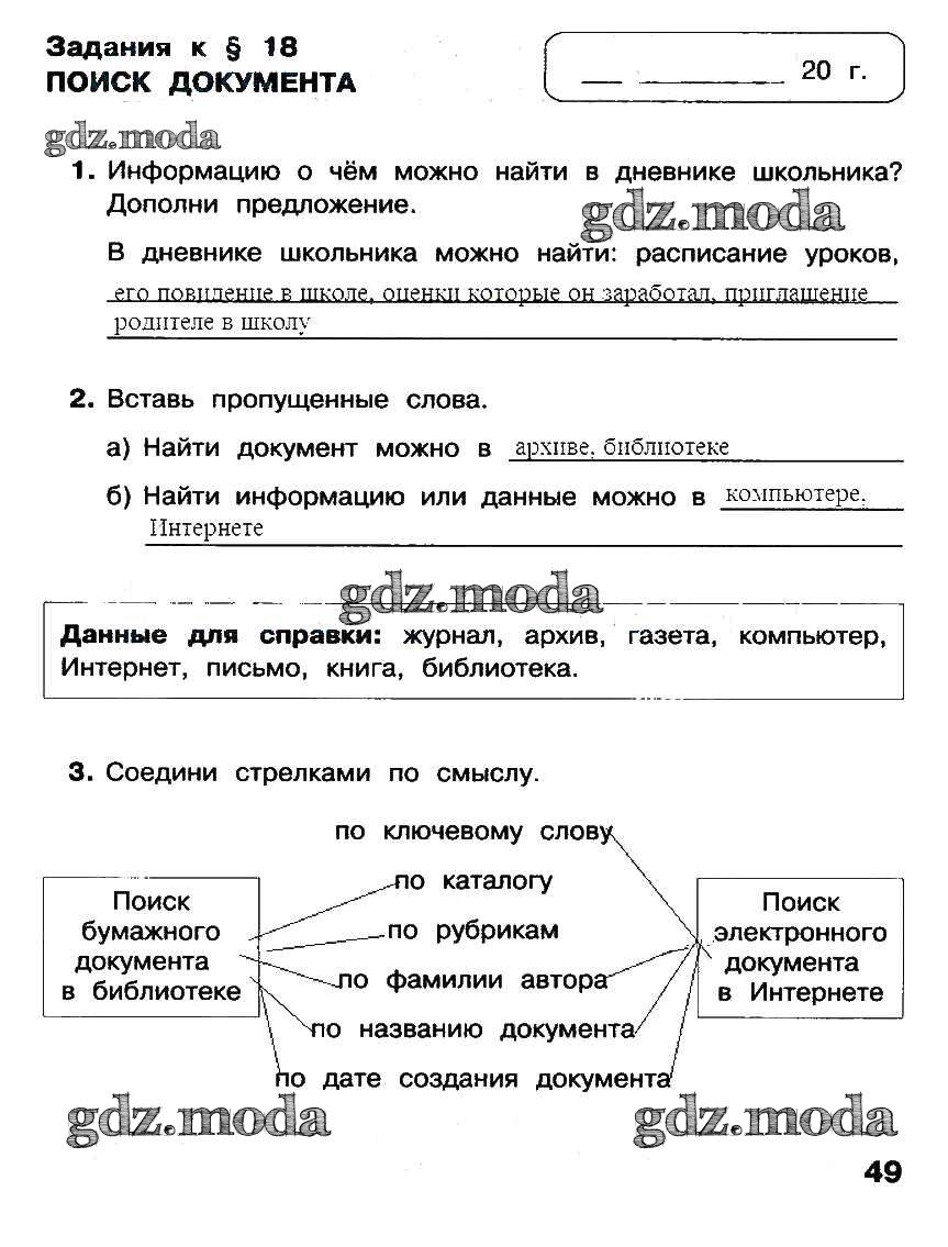 ГДЗ решение к заданию № стр. 49 Информатика 2 класс рабочая тетрадь Матвеева Н.В. Бином 2012 Часть 1, Часть 2 ФГОС бесплатно на гдз.мода!
