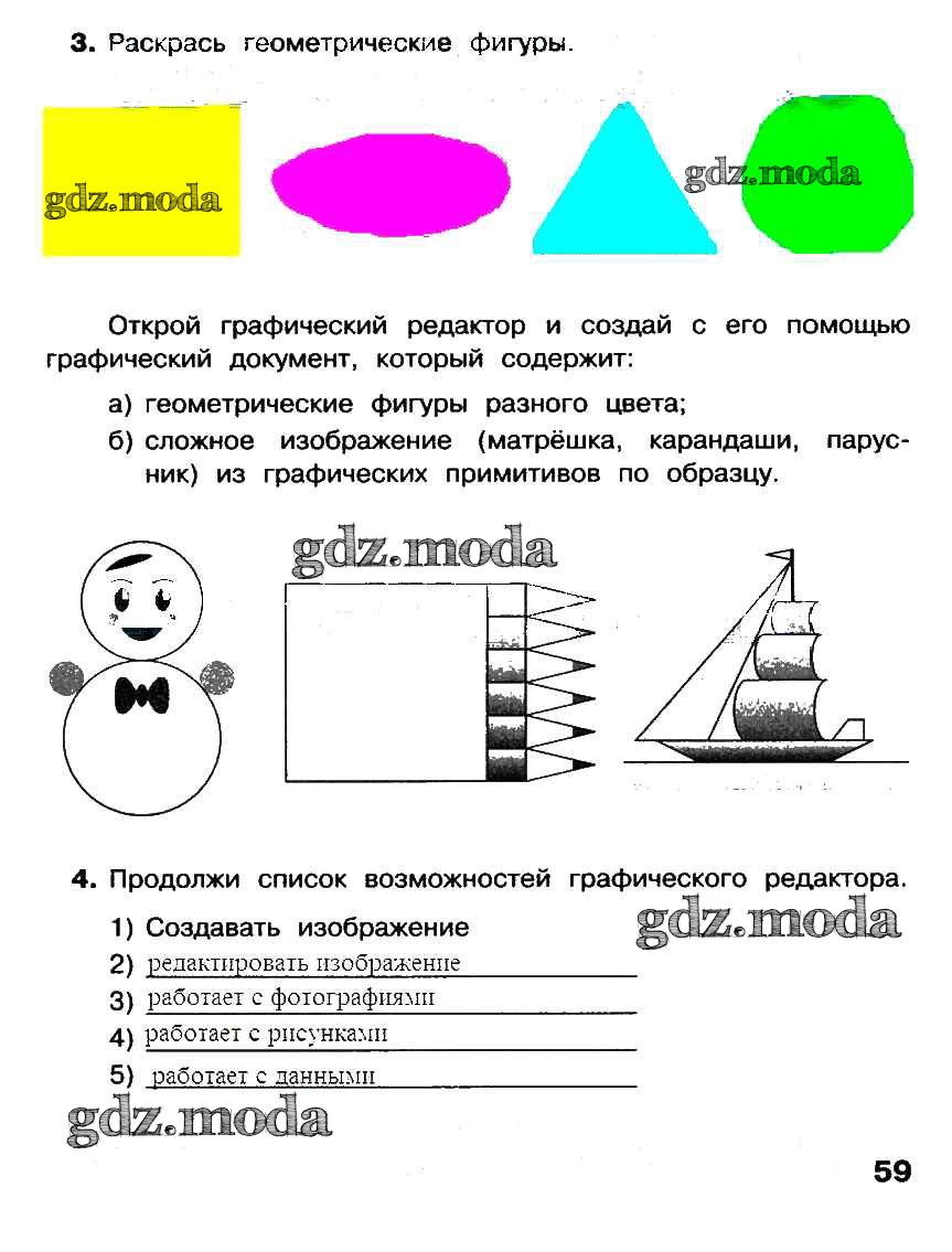 ГДЗ решение к заданию № стр. 59 Информатика 2 класс рабочая тетрадь Матвеева Н.В. Бином 2012 Часть 1, Часть 2 ФГОС бесплатно на гдз.мода!
