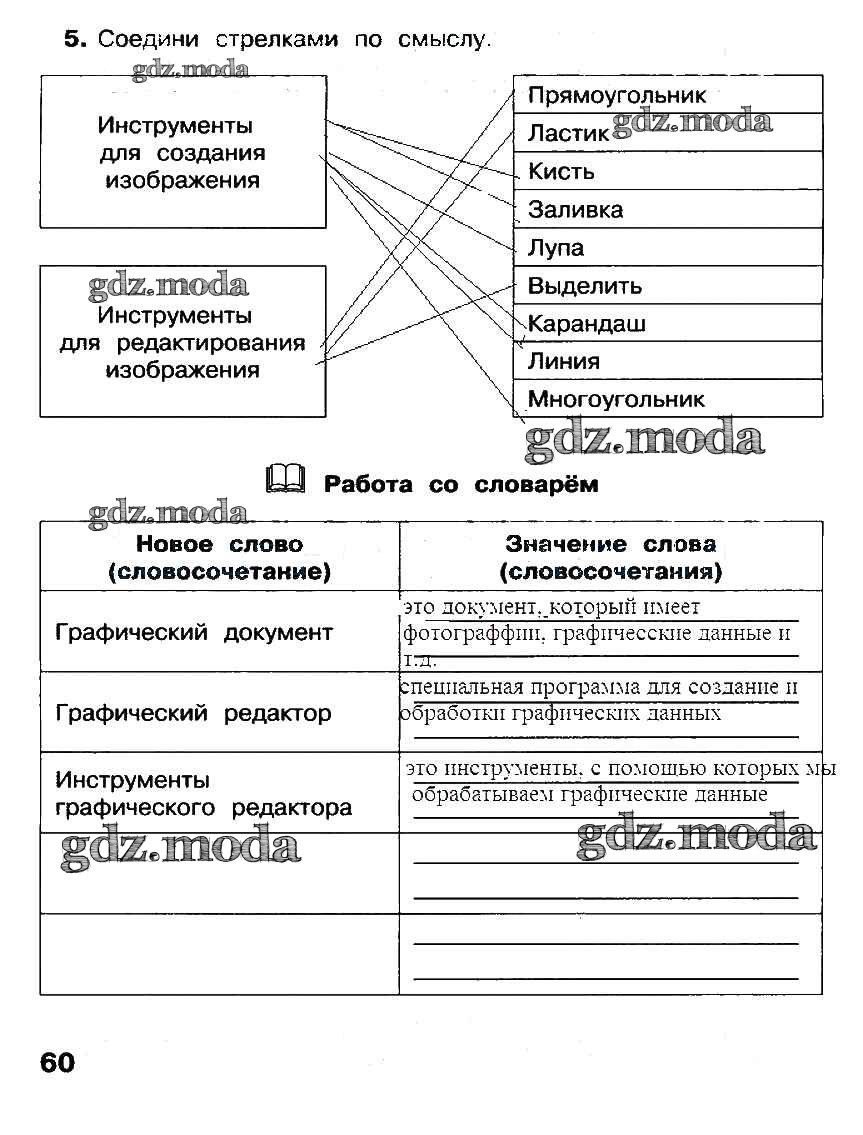 ГДЗ решение к заданию № стр. 60 Информатика 2 класс рабочая тетрадь Матвеева Н.В. Бином 2012 Часть 1, Часть 2 ФГОС бесплатно на гдз.мода!