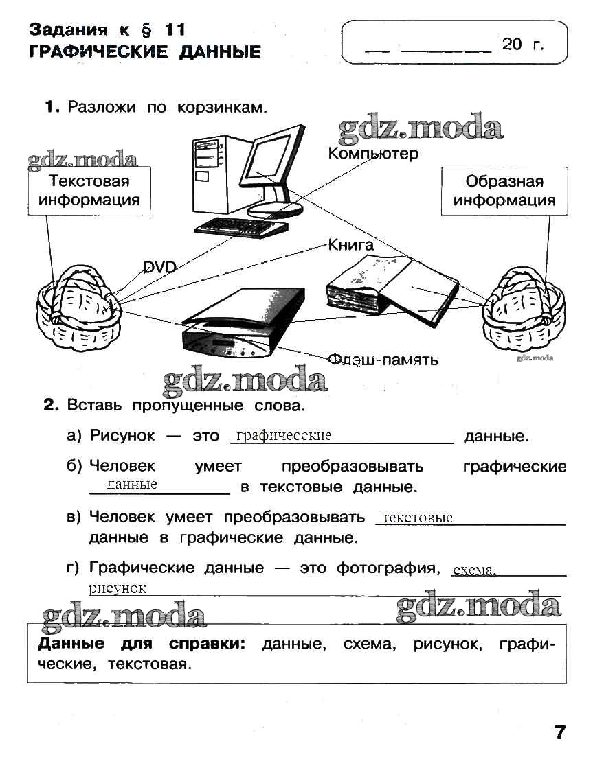 ГДЗ решение к заданию № стр. 7 Информатика 2 класс рабочая тетрадь Матвеева Н.В. Бином 2012 Часть 1, Часть 2 ФГОС бесплатно на гдз.мода!