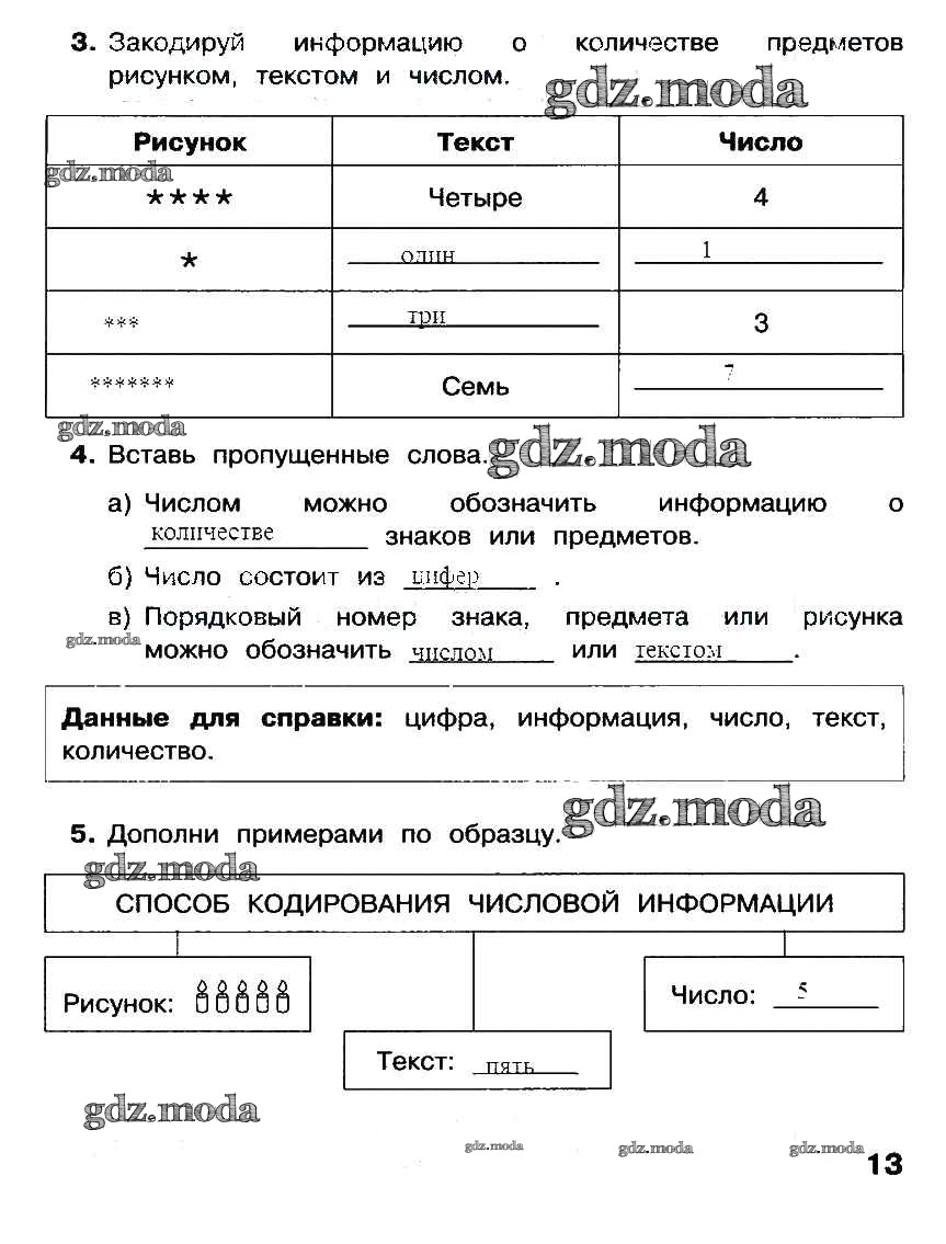 ГДЗ решение к заданию № стр. 13 Информатика 2 класс рабочая тетрадь Матвеева Н.В. Бином 2012 Часть 1, Часть 2 ФГОС бесплатно на гдз.мода!