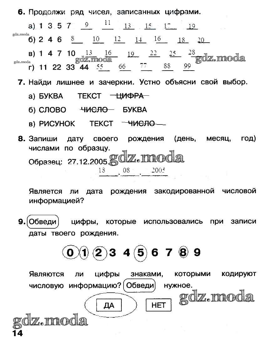 ОТВЕТ на задание № стр. 14 Рабочая тетрадь по Информатике 2 класс Матвеева УМК