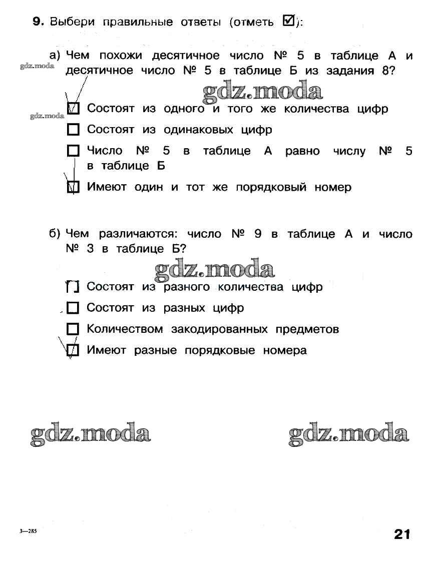 ГДЗ решение к заданию № стр. 21 Информатика 2 класс рабочая тетрадь Матвеева Н.В. Бином 2012 Часть 1, Часть 2 ФГОС бесплатно на гдз.мода!