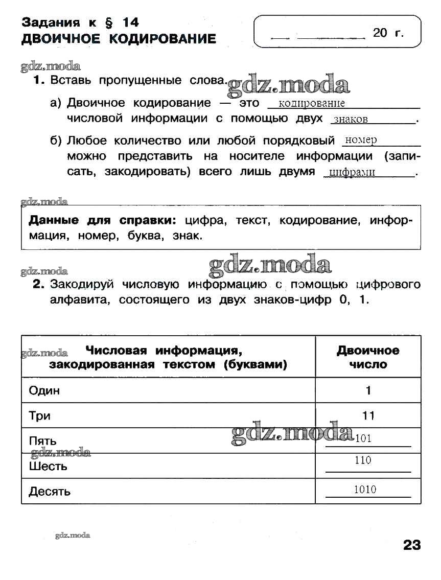 ГДЗ решение к заданию № стр. 23 Информатика 2 класс рабочая тетрадь Матвеева Н.В. Бином 2012 Часть 1, Часть 2 ФГОС бесплатно на гдз.мода!