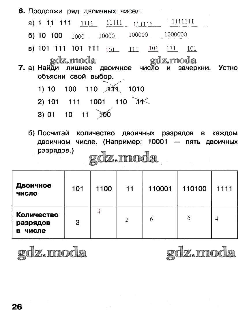 ГДЗ решение к заданию № стр. 26 Информатика 2 класс рабочая тетрадь Матвеева Н.В. Бином 2012 Часть 1, Часть 2 ФГОС бесплатно на гдз.мода!