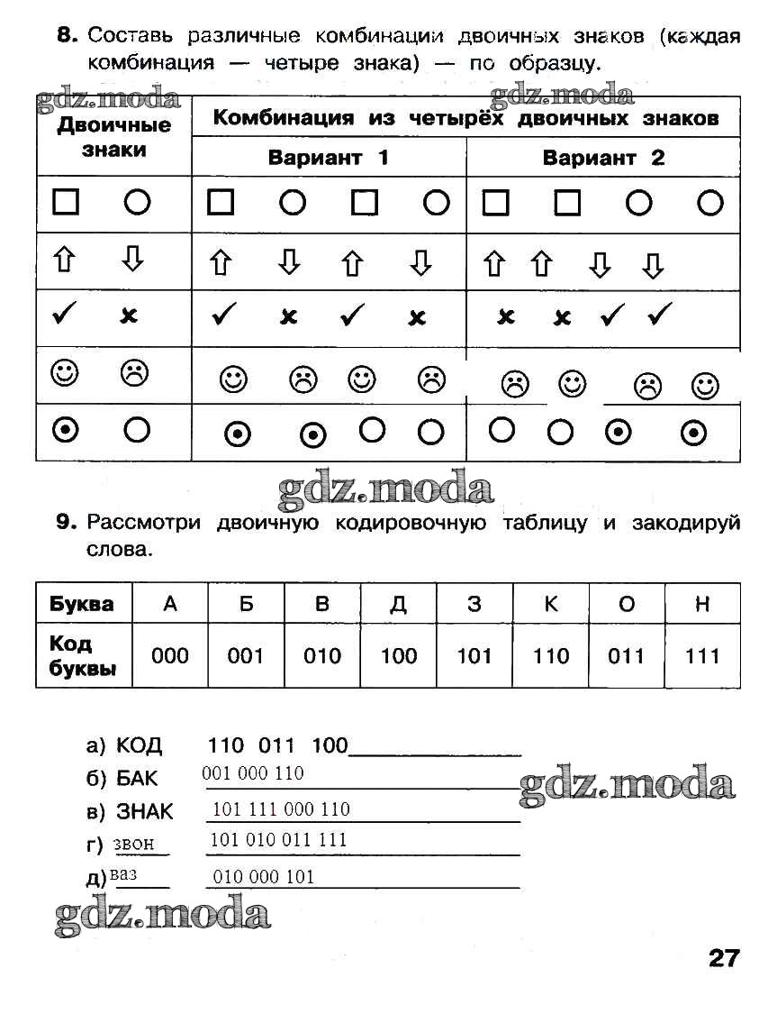 ГДЗ решение к заданию № стр. 27 Информатика 2 класс рабочая тетрадь Матвеева Н.В. Бином 2012 Часть 1, Часть 2 ФГОС бесплатно на гдз.мода!