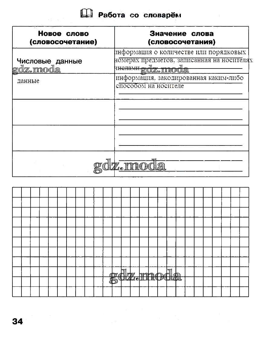 ГДЗ решение к заданию № стр. 34 Информатика 2 класс рабочая тетрадь Матвеева Н.В. Бином 2012 Часть 1, Часть 2 ФГОС бесплатно на гдз.мода!