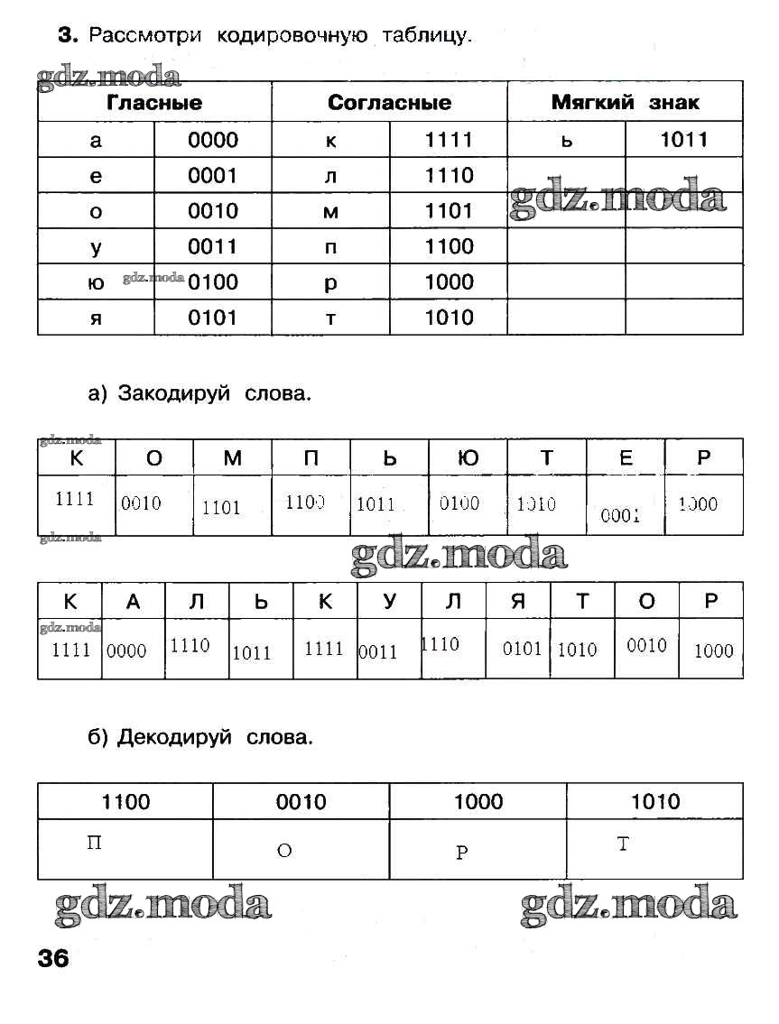 ГДЗ решение к заданию № стр. 36 Информатика 2 класс рабочая тетрадь Матвеева Н.В. Бином 2012 Часть 1, Часть 2 ФГОС бесплатно на гдз.мода!
