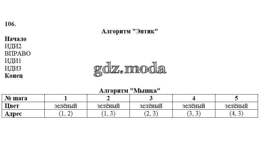 ГДЗ решение к заданию № 106 Информатика 2 класс тетрадь для самостоятельной работы Бененсон Е.П. Академкнига 2018 ФГОС бесплатно на гдз.мода!