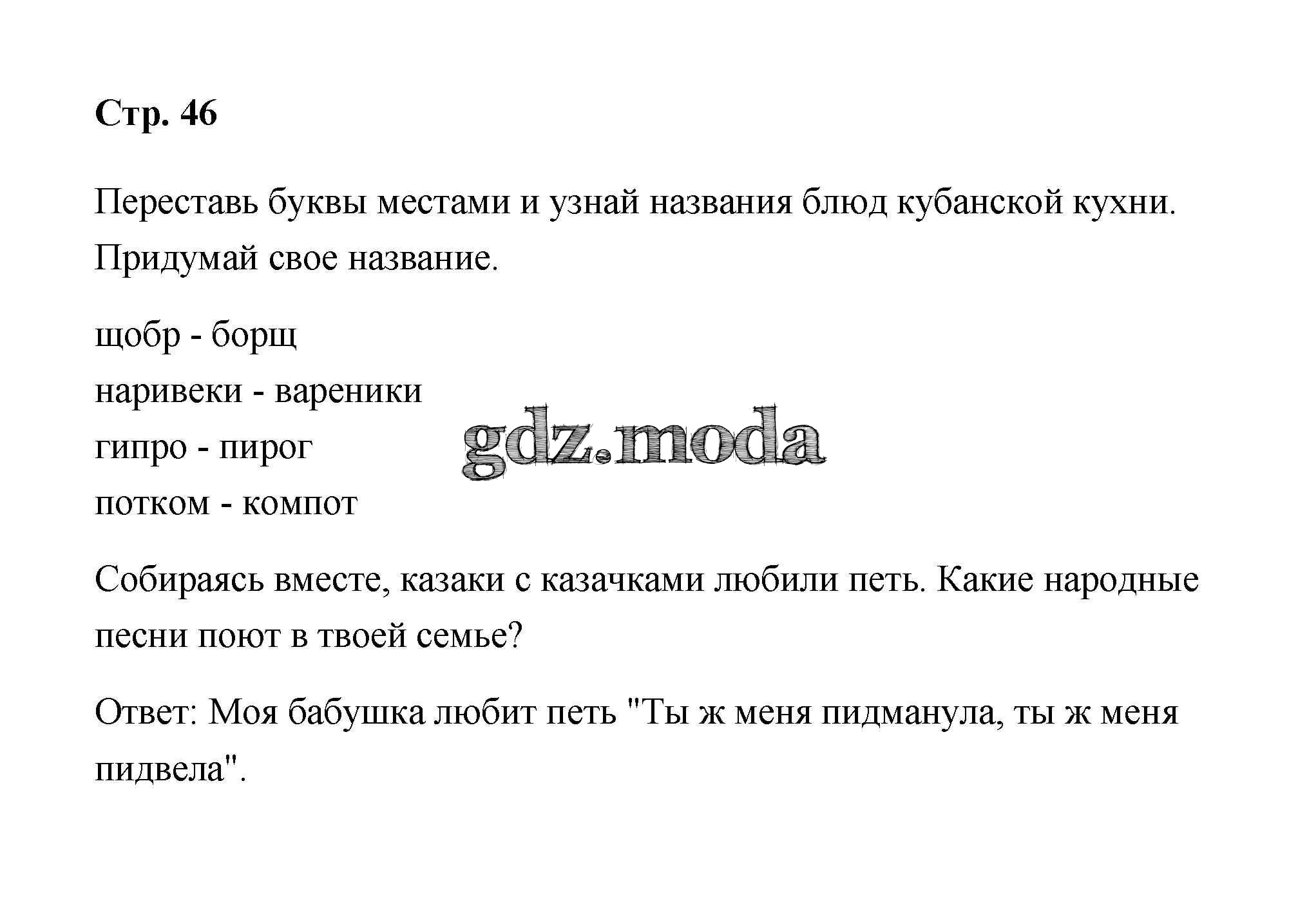 ГДЗ решение к заданию № 46 Кубановедение 2 класс рабочая тетрадь Еременко Перспективы образования 2020 ФГОС бесплатно на гдз.мода!