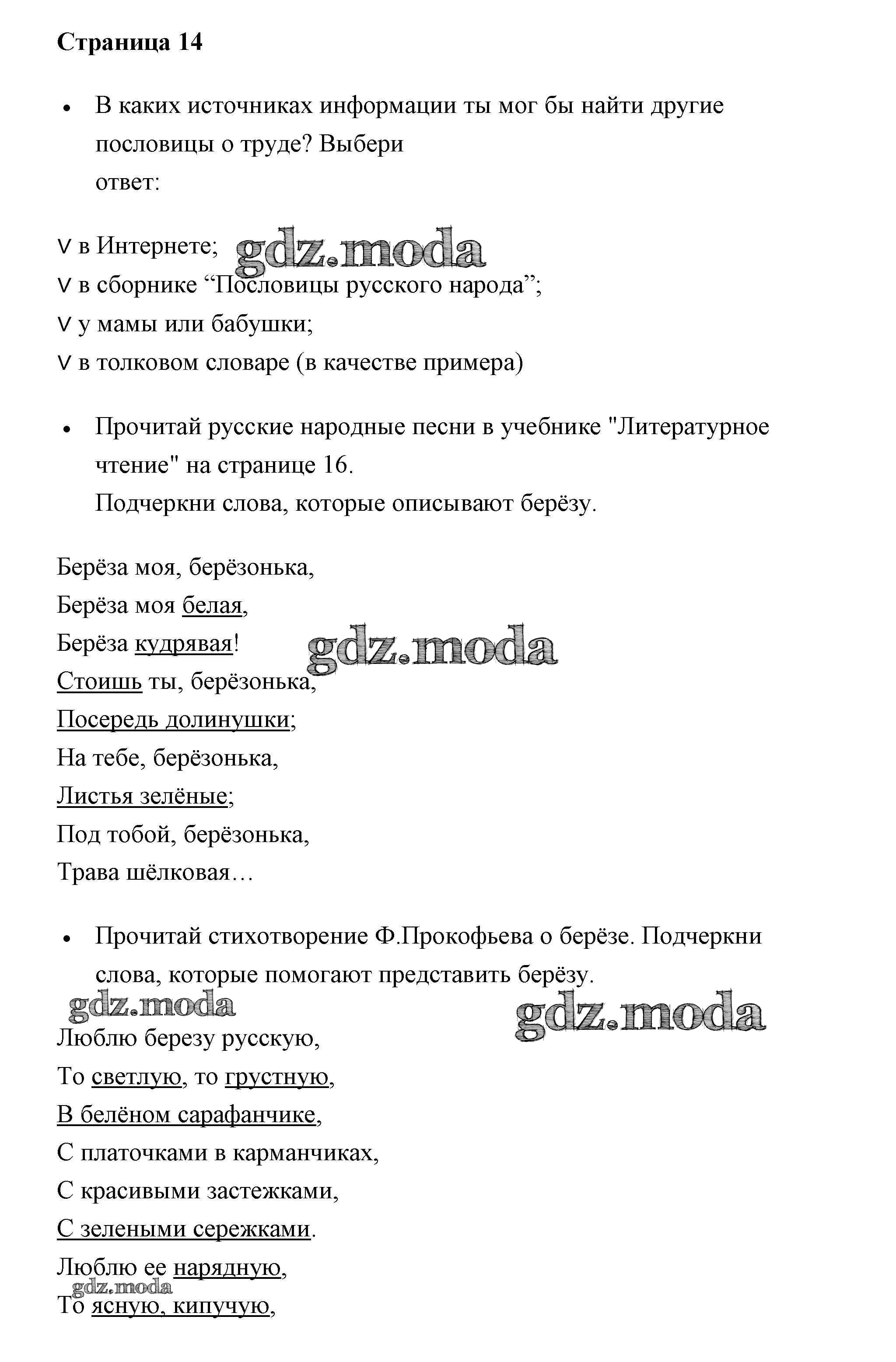 ГДЗ решение к заданию № 14 Литературное чтение 2 класс рабочая тетрадь Бойкина Просвещение 2018 ФГОС бесплатно на гдз.мода!