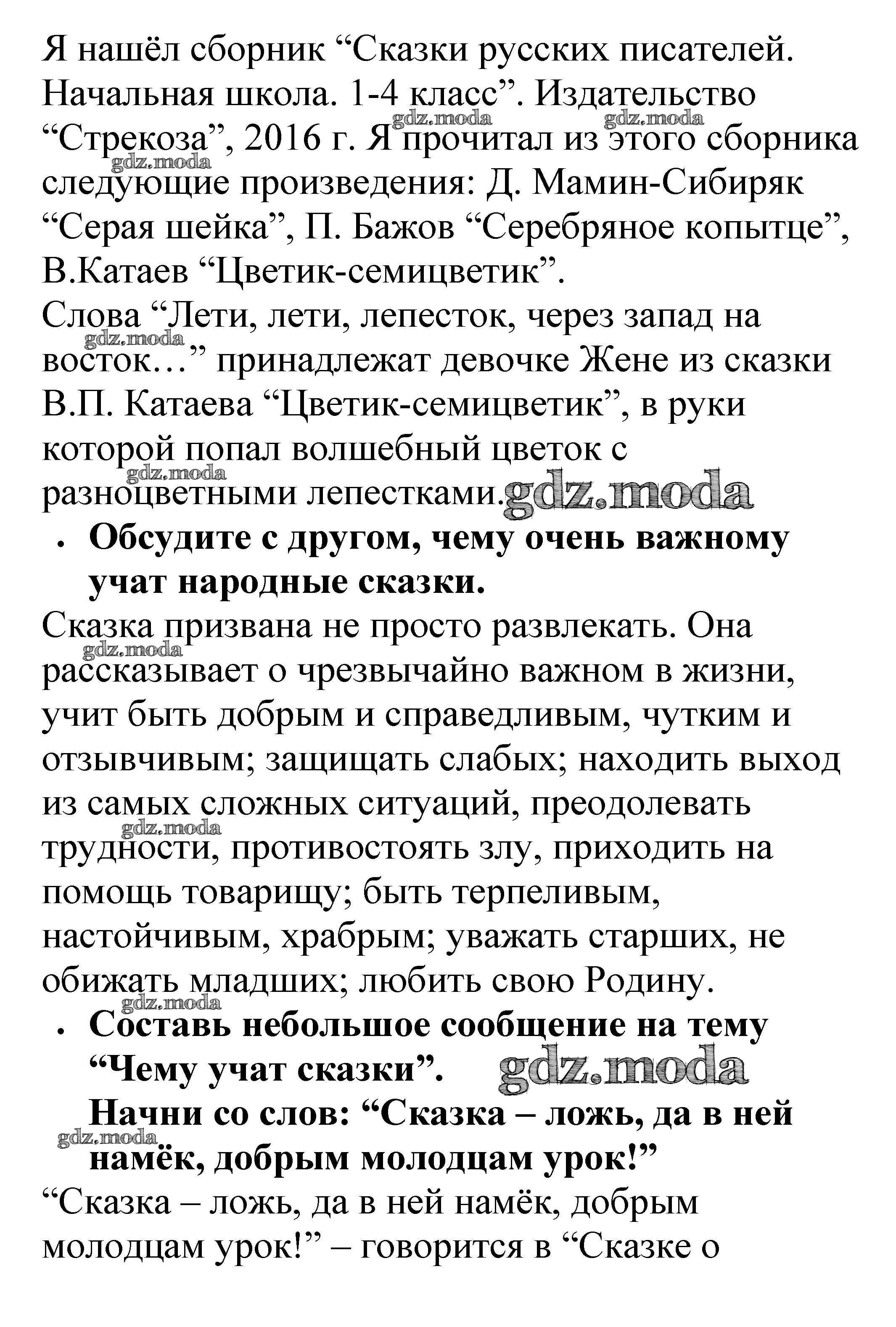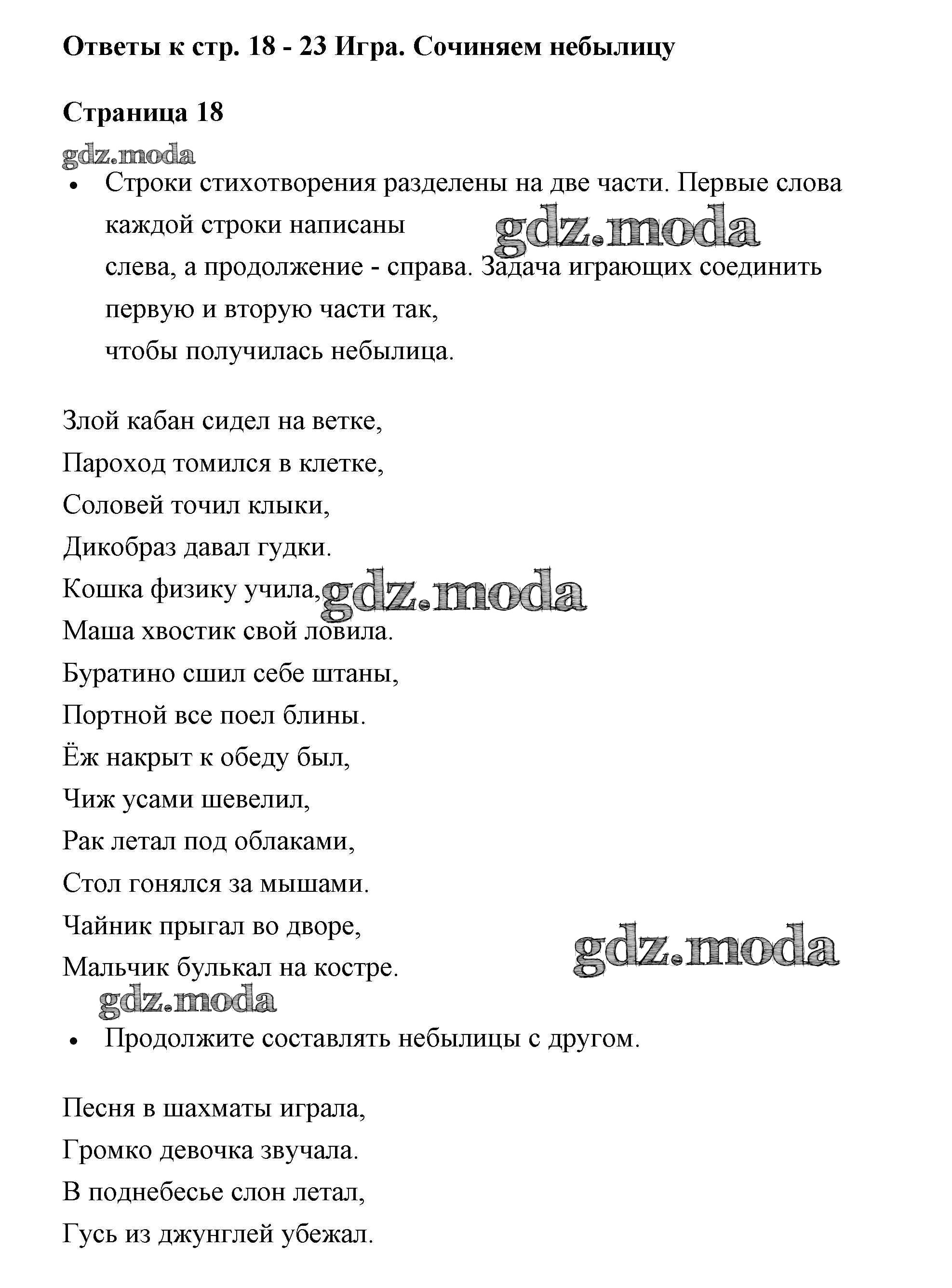ОТВЕТ на задание № 18 Рабочая тетрадь по Литературе 2 класс Бойкина Школа России
