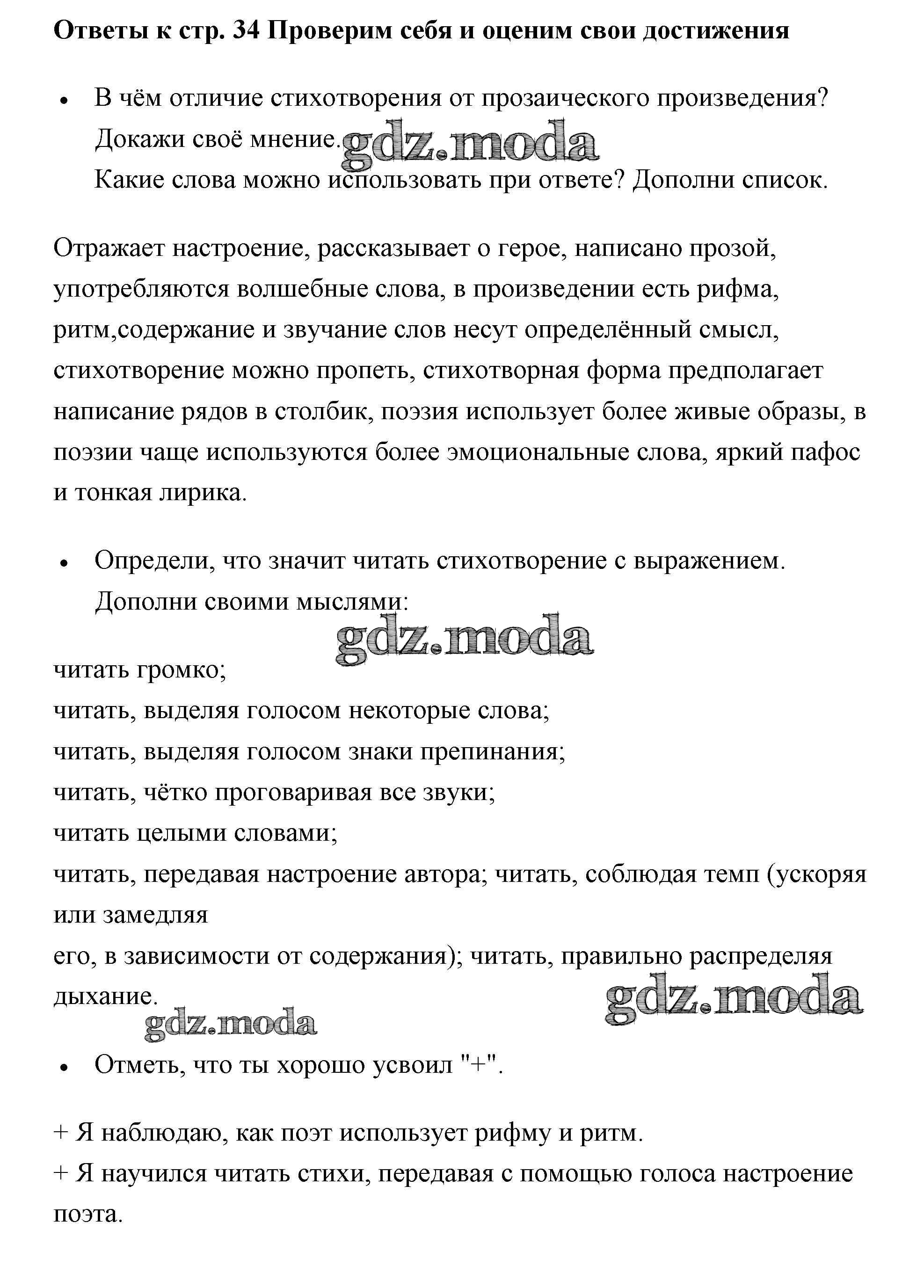 ГДЗ решение к заданию № 34 Литературное чтение 2 класс рабочая тетрадь Бойкина Просвещение 2018 ФГОС бесплатно на гдз.мода!