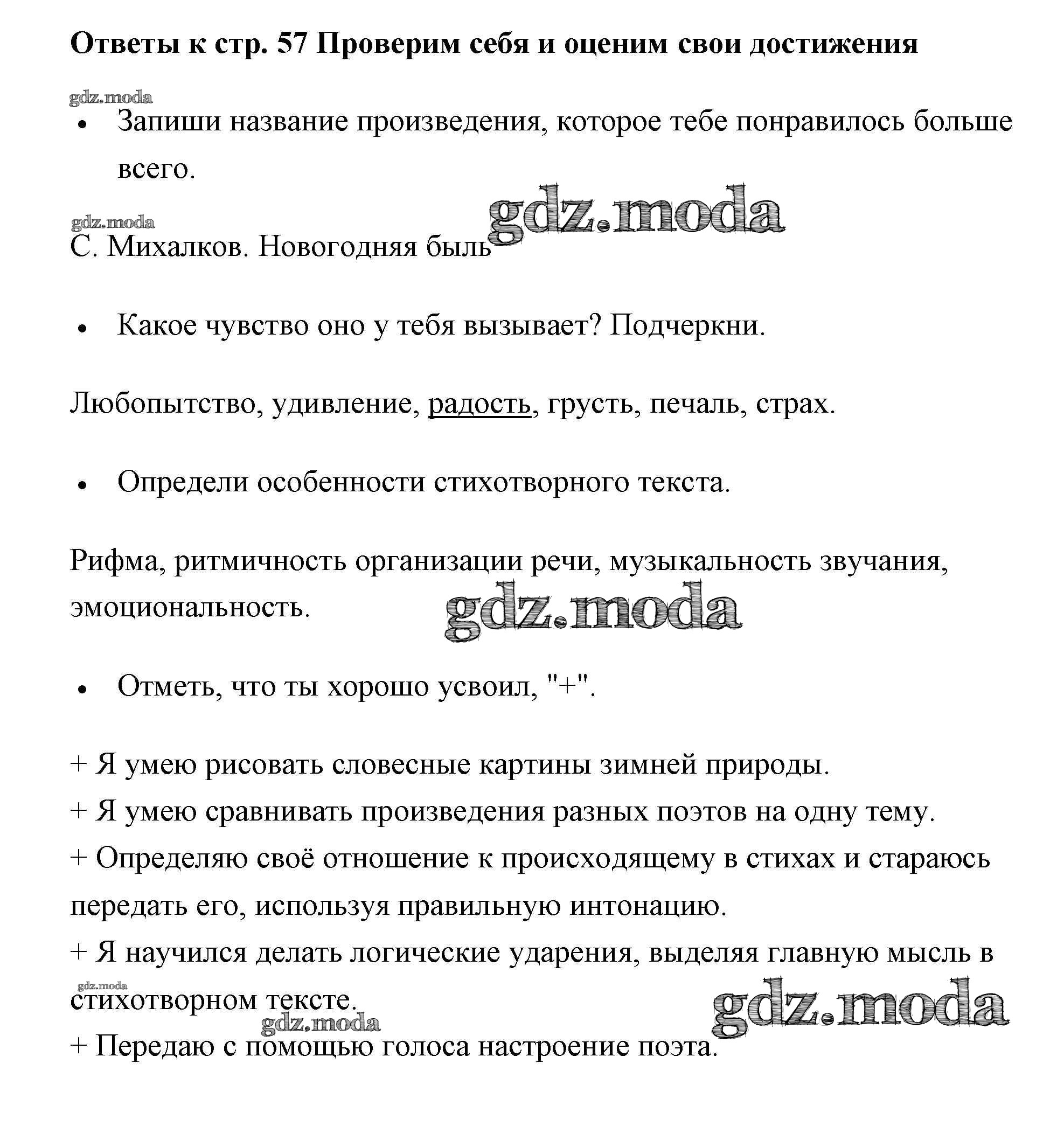 ГДЗ решение к заданию № 57 Литературное чтение 2 класс рабочая тетрадь Бойкина Просвещение 2018 ФГОС бесплатно на гдз.мода!