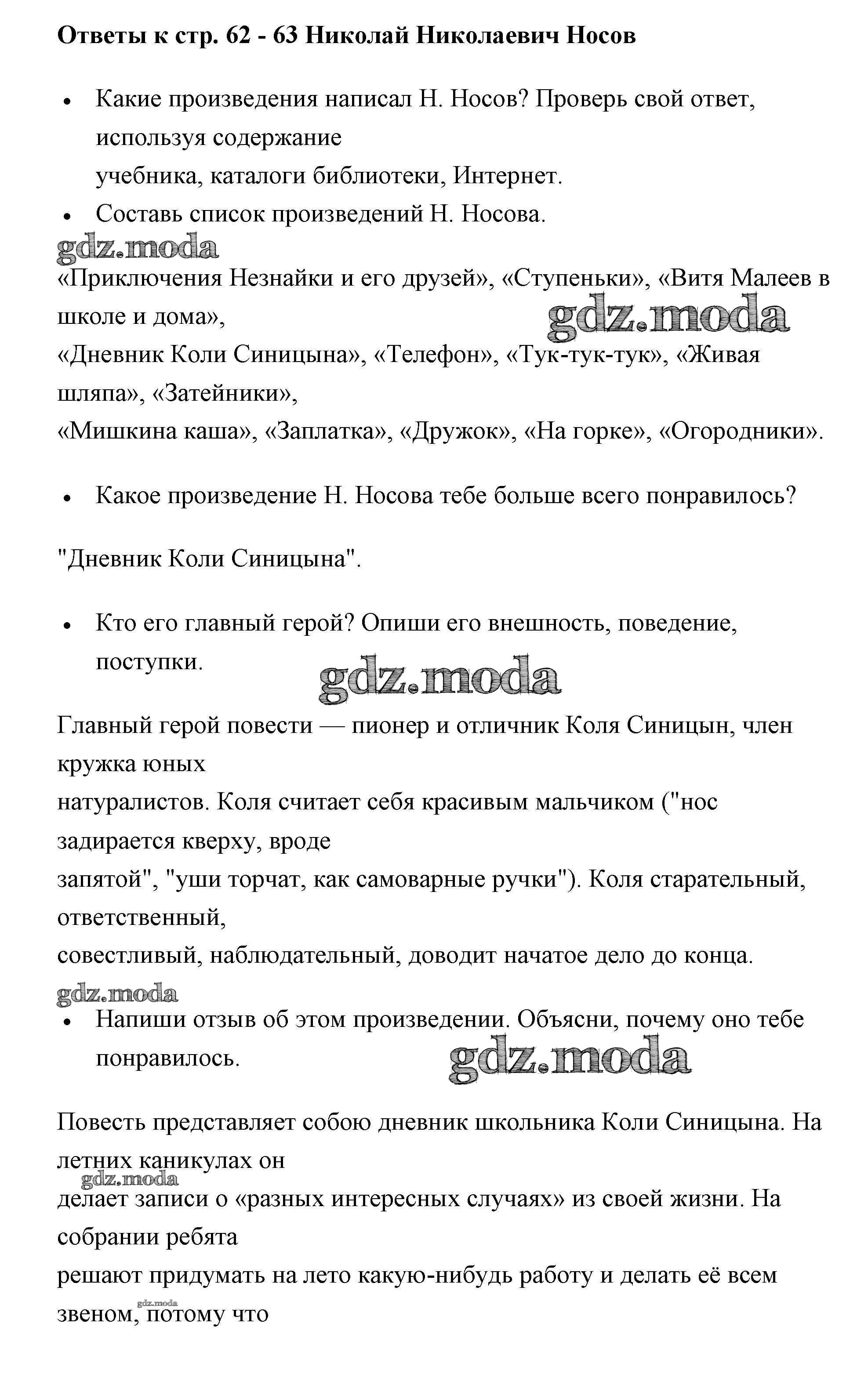 ГДЗ решение к заданию № 62 Литературное чтение 2 класс рабочая тетрадь Бойкина Просвещение 2018 ФГОС бесплатно на гдз.мода!