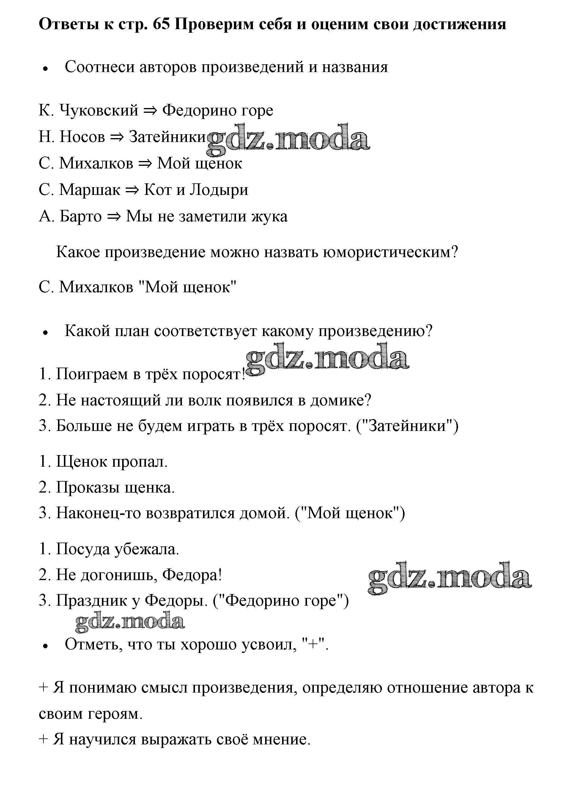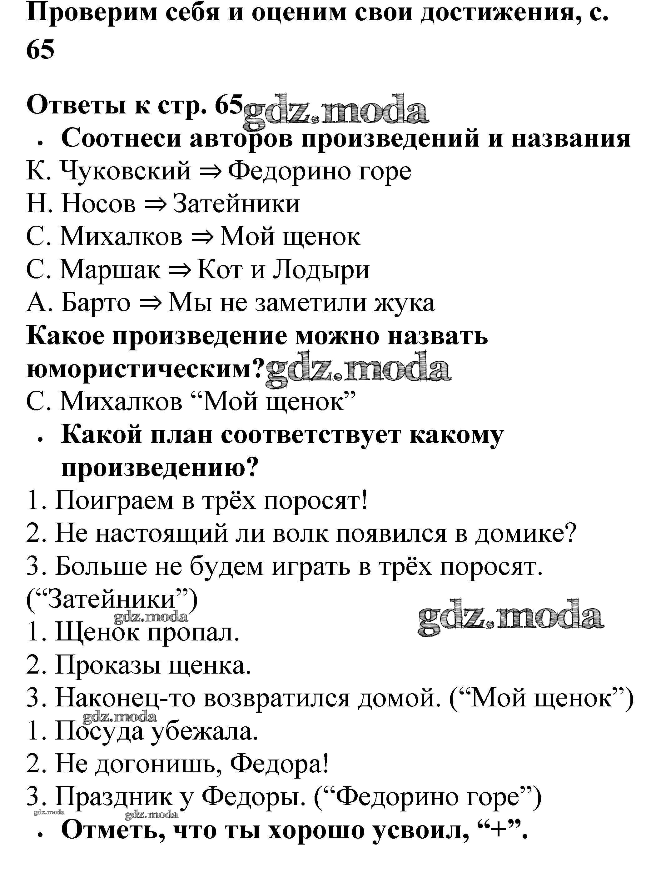 ГДЗ решение к заданию № 65 Литературное чтение 2 класс рабочая тетрадь Бойкина Просвещение 2018 ФГОС бесплатно на гдз.мода!