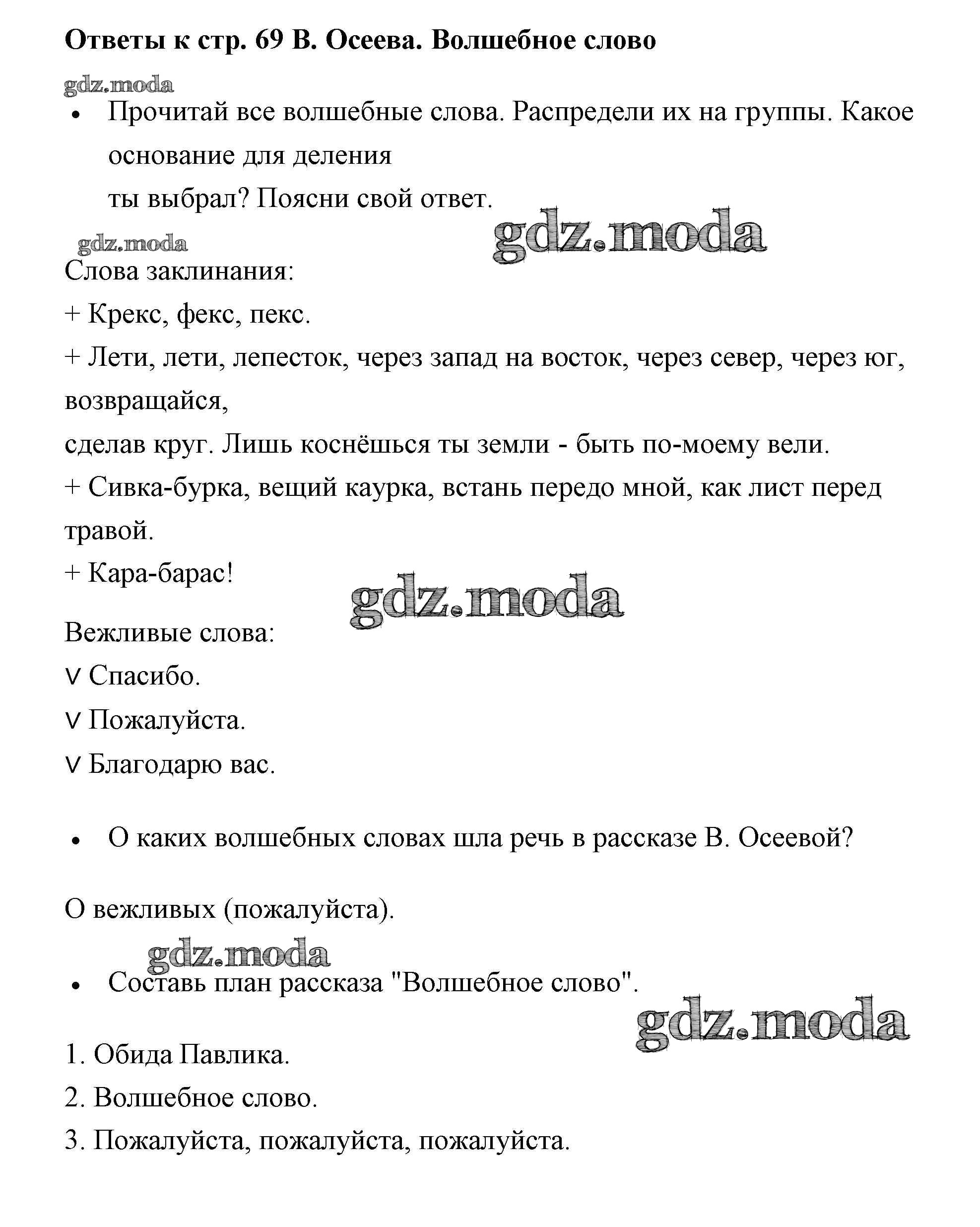 ГДЗ решение к заданию № 69 Литературное чтение 2 класс рабочая тетрадь Бойкина Просвещение 2018 ФГОС бесплатно на гдз.мода!