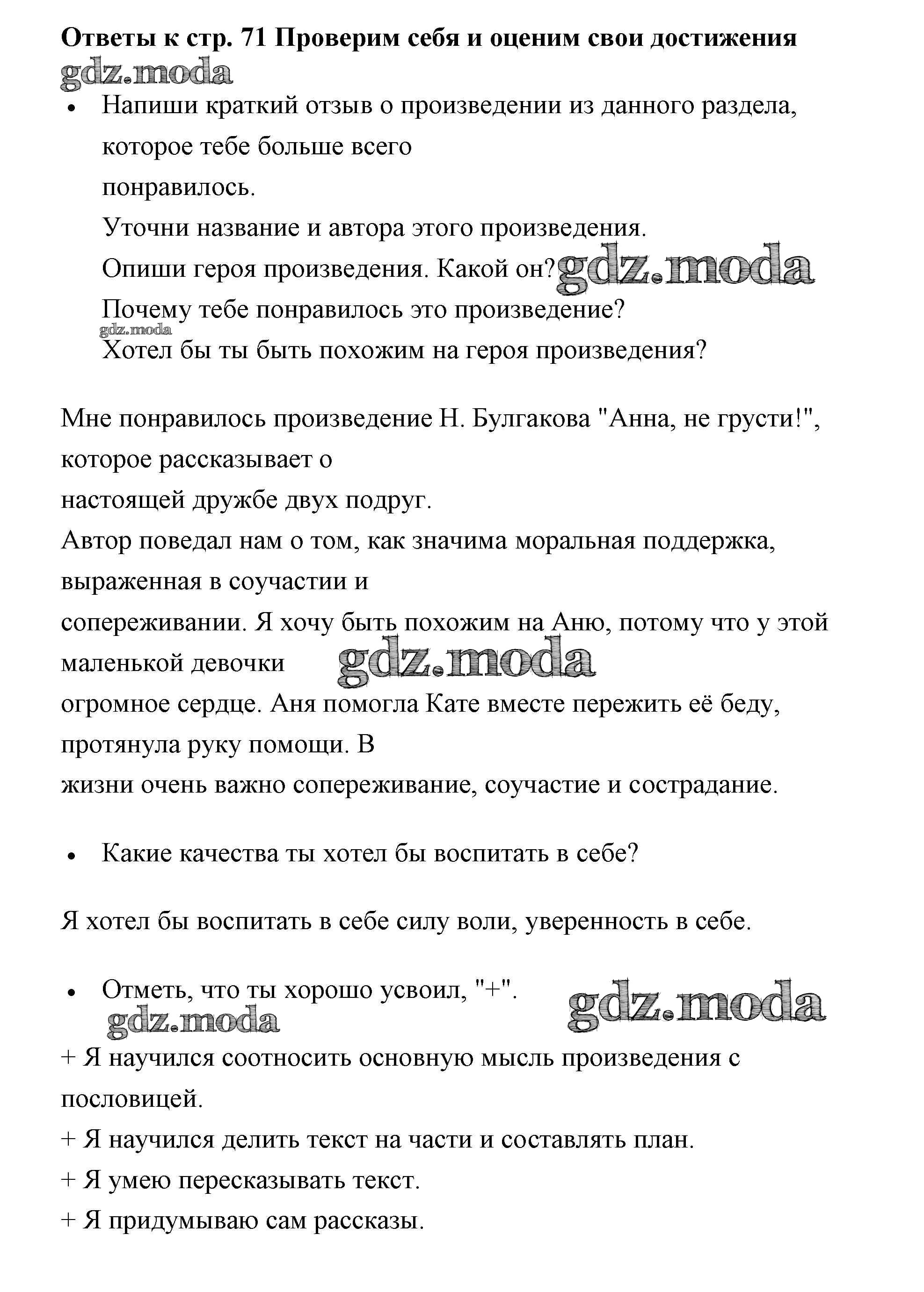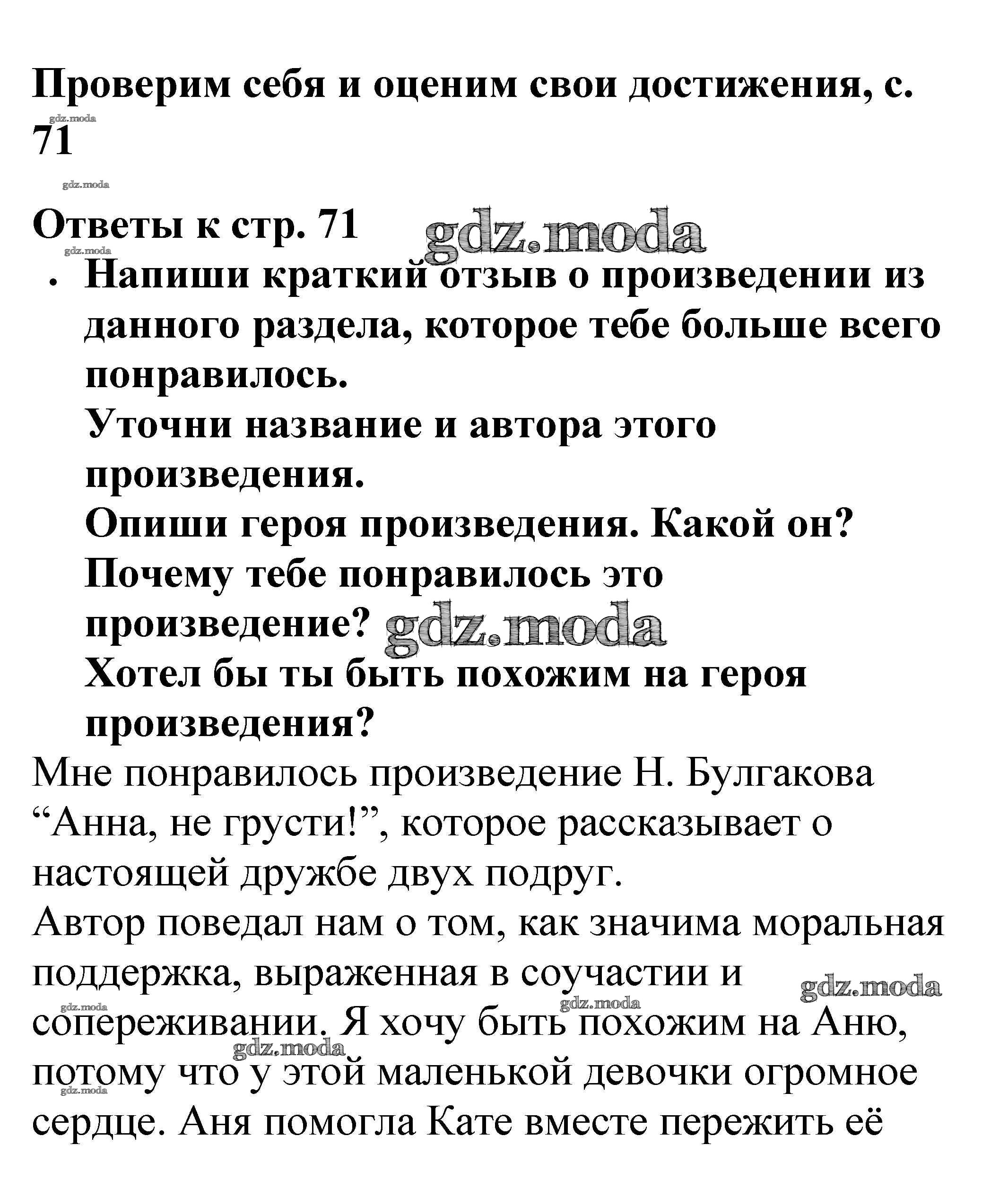 ГДЗ решение к заданию № 71 Литературное чтение 2 класс рабочая тетрадь Бойкина Просвещение 2018 ФГОС бесплатно на гдз.мода!