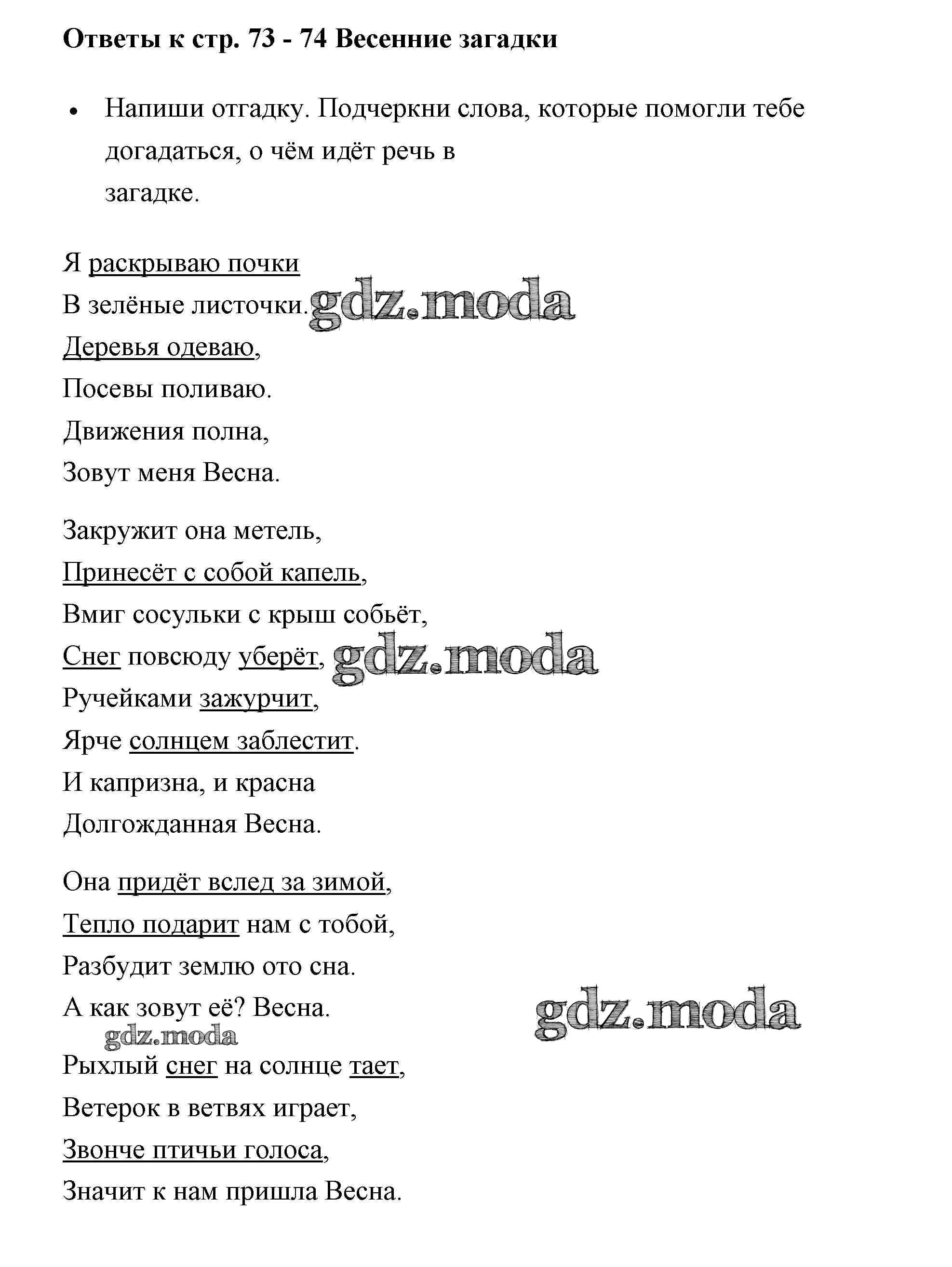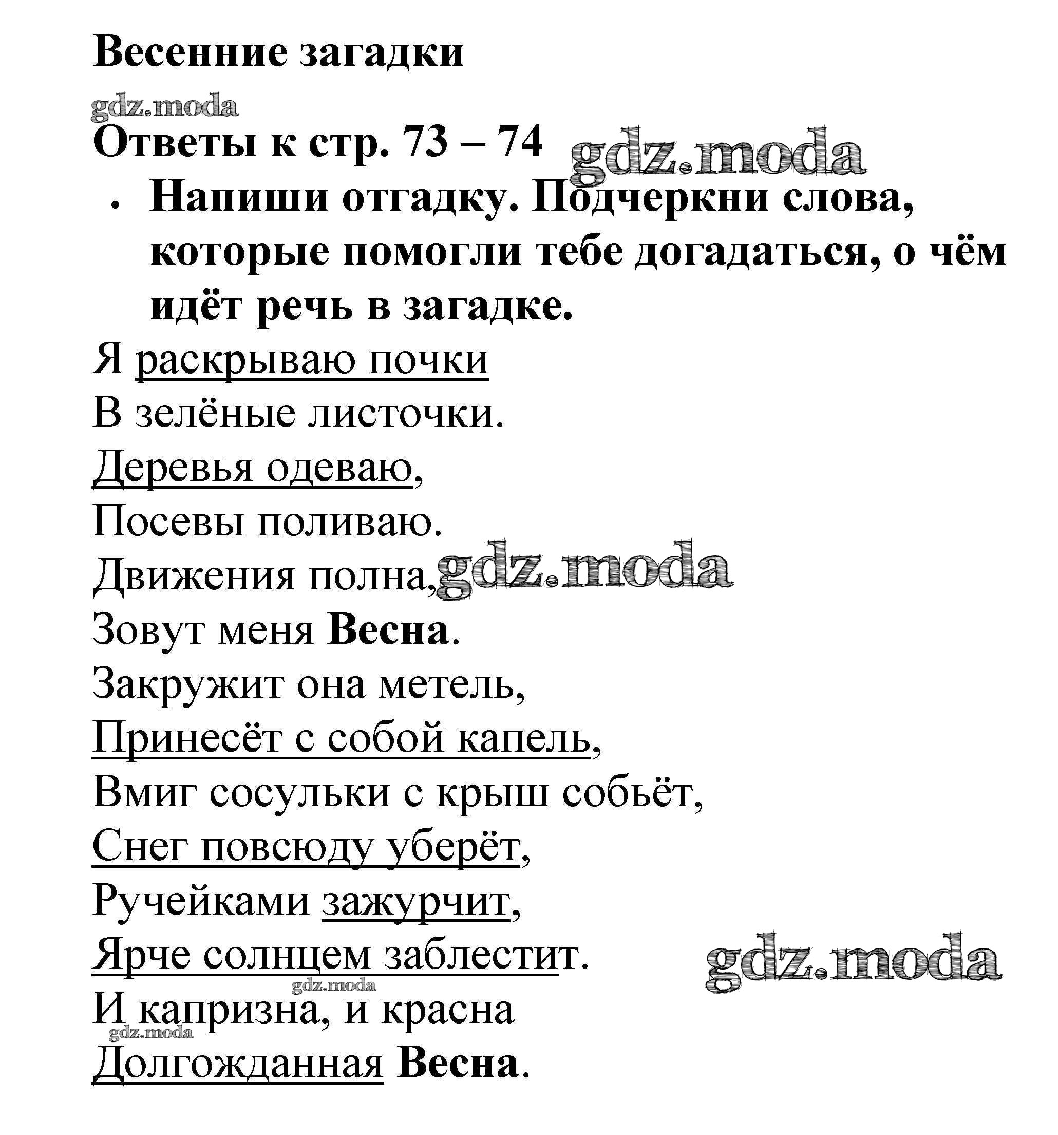 ГДЗ решение к заданию № 73 Литературное чтение 2 класс рабочая тетрадь Бойкина Просвещение 2018 ФГОС бесплатно на гдз.мода!