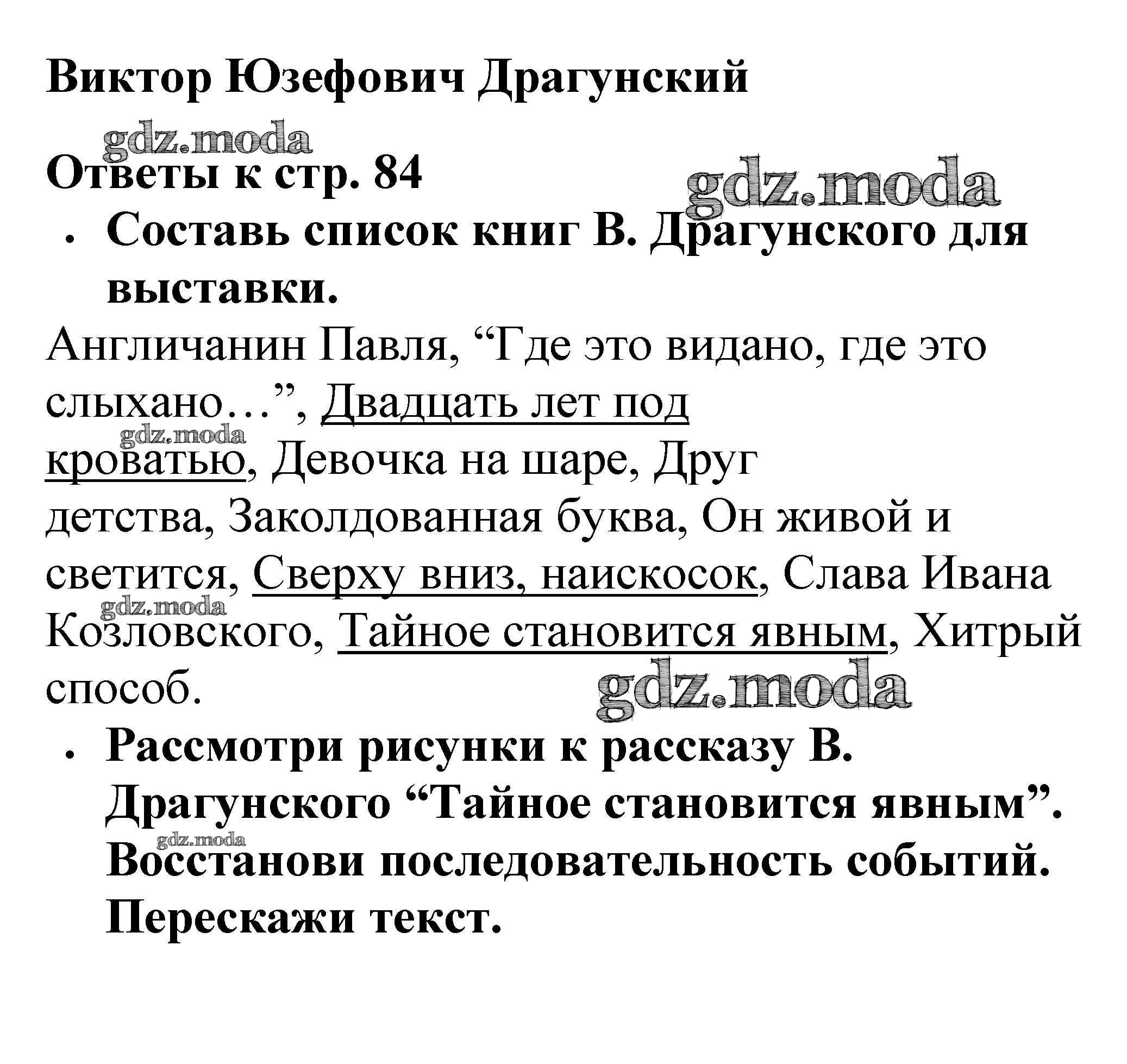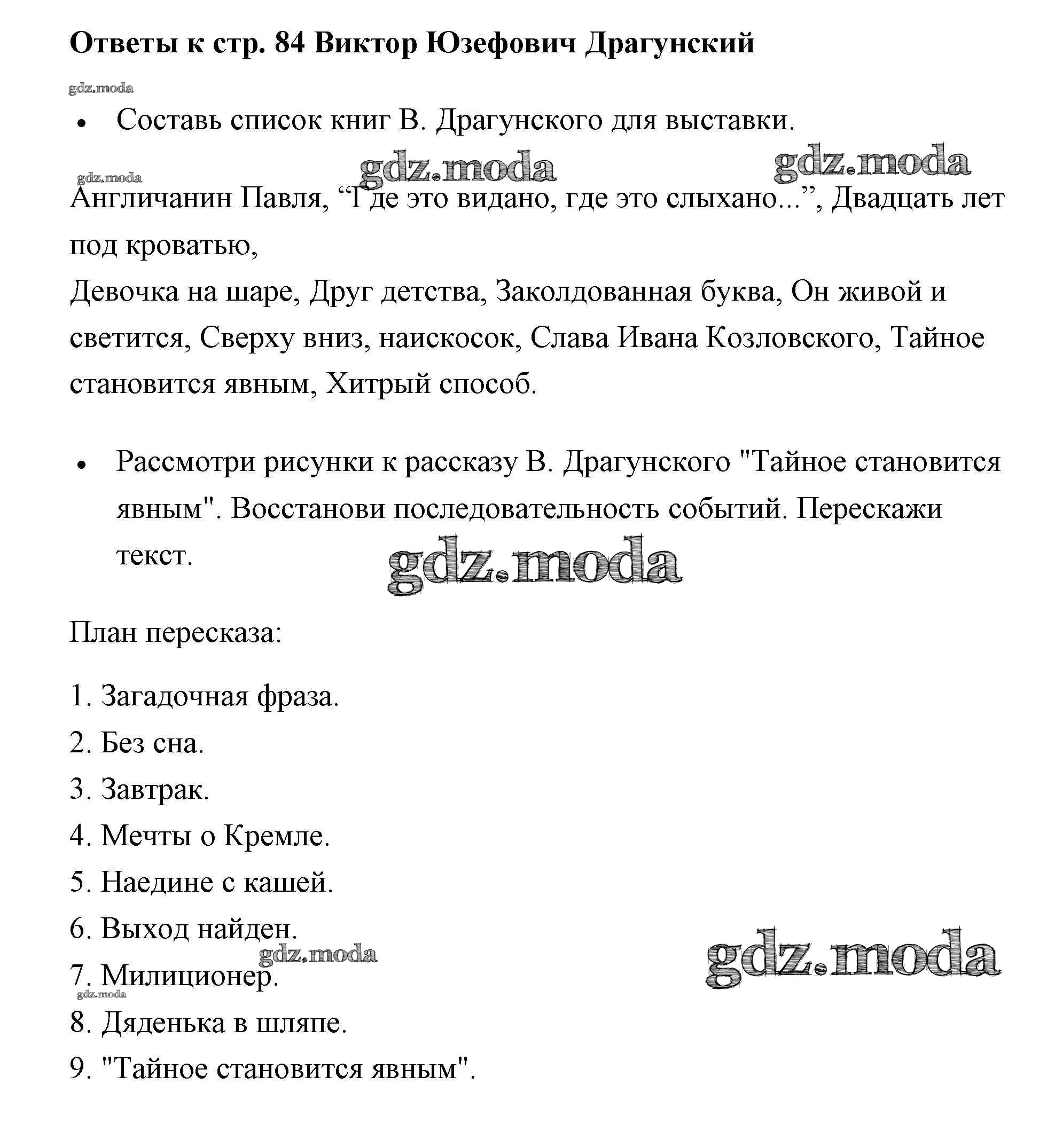 ГДЗ решение к заданию № 84 Литературное чтение 2 класс рабочая тетрадь Бойкина Просвещение 2018 ФГОС бесплатно на гдз.мода!