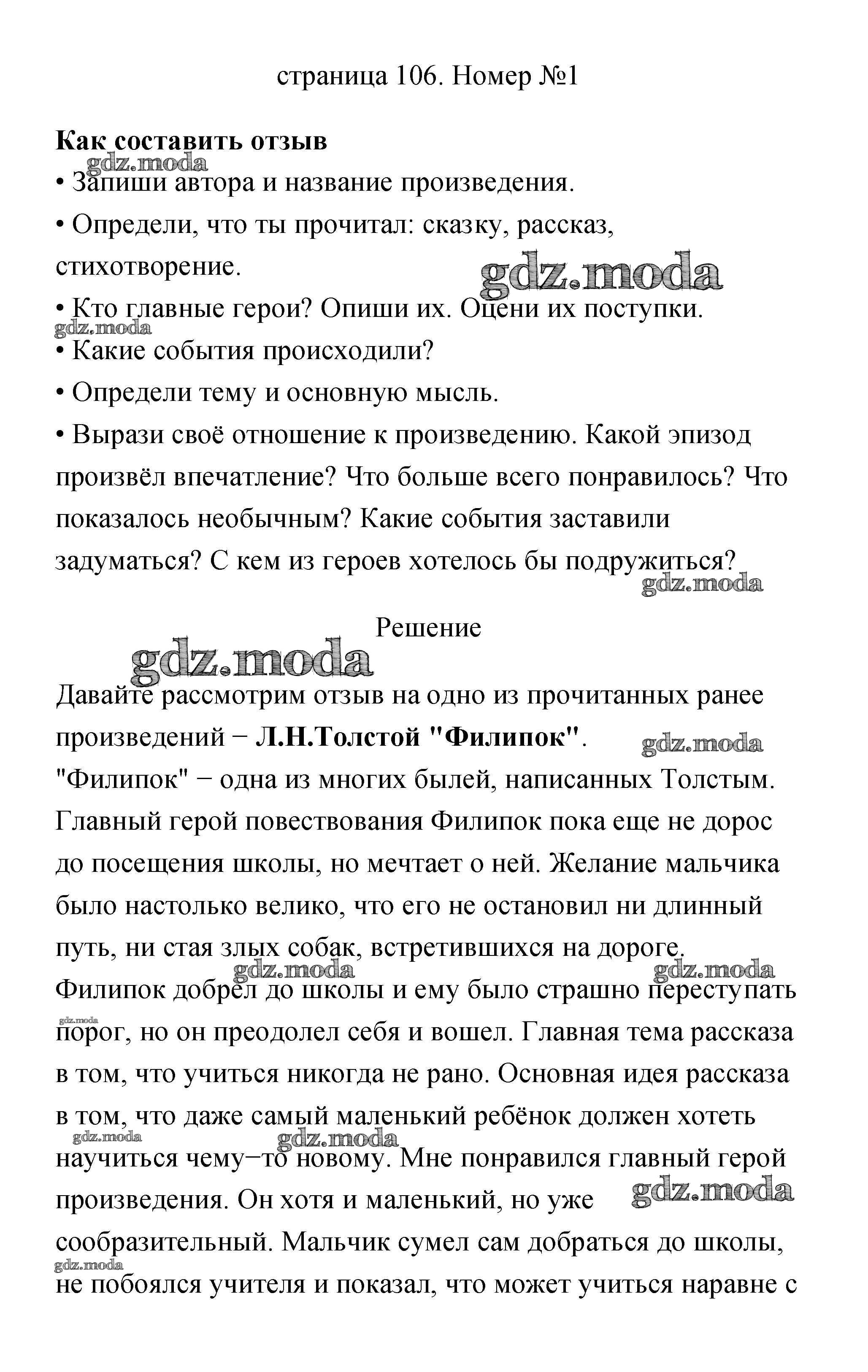 ГДЗ решение к заданию № 106 Литературное чтение 2 класс Климанова Просвещение 2018 Часть 1, Часть 2 ФГОС бесплатно на гдз.мода!