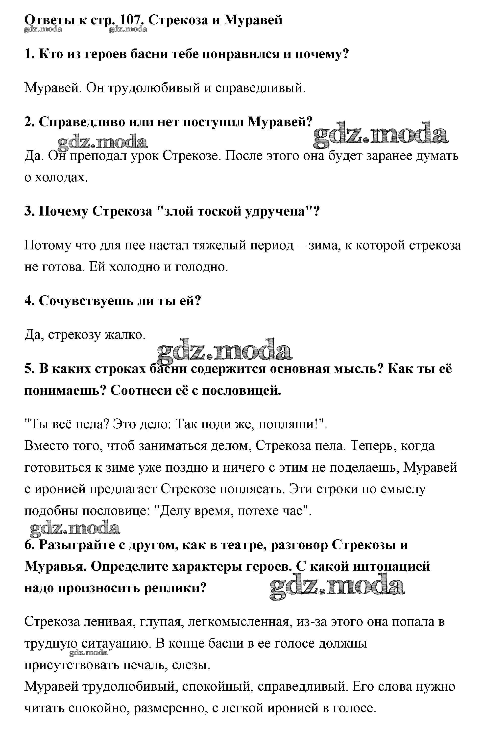 ОТВЕТ на задание № 107 Учебник по Литературе 2 класс Климанова Школа России