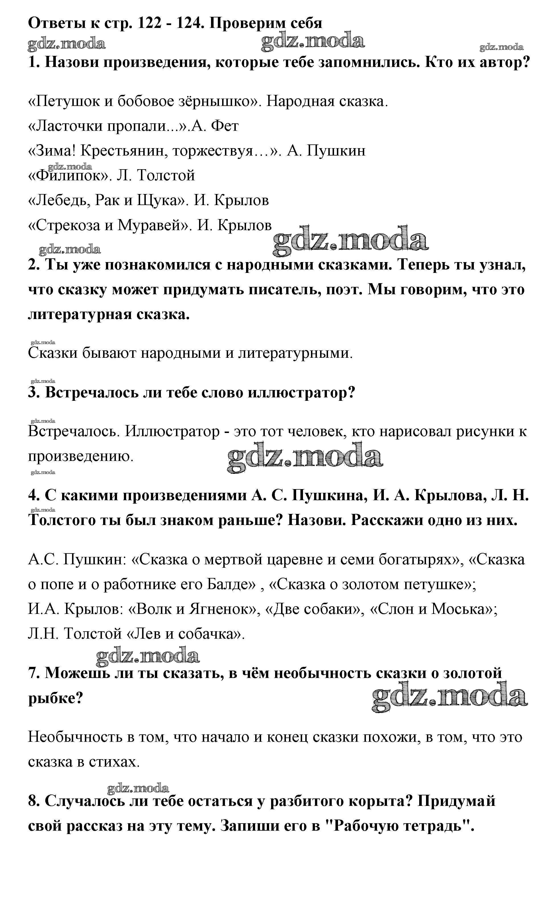 ГДЗ решение к заданию № 122-124 Литературное чтение 2 класс Климанова Просвещение 2018 Часть 1, Часть 2 ФГОС бесплатно на гдз.мода!