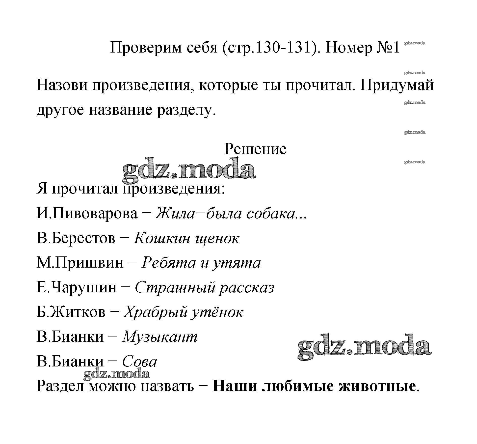 ОТВЕТ на задание № 130 Учебник по Литературе 2 класс Климанова Школа России