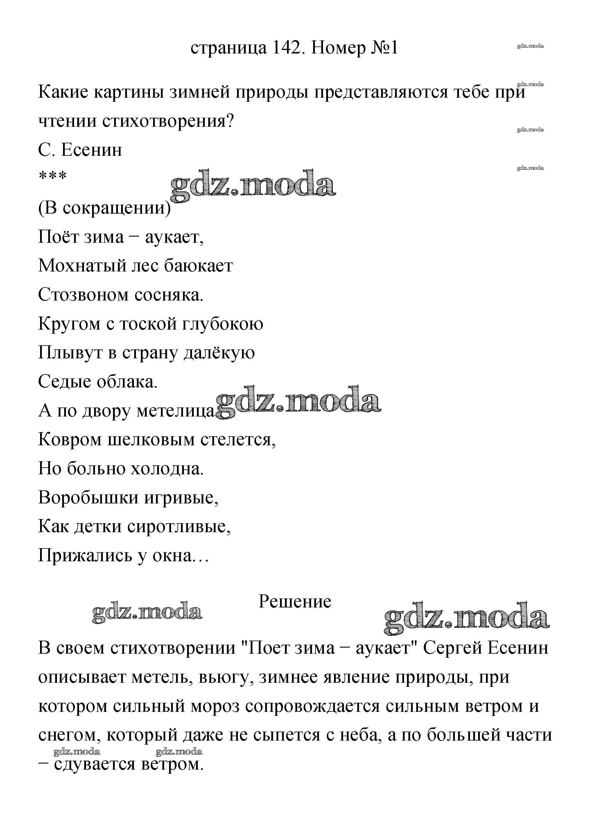 ГДЗ решение к заданию № 142 Литературное чтение 2 класс Климанова Просвещение 2018 Часть 1, Часть 2 ФГОС бесплатно на гдз.мода!