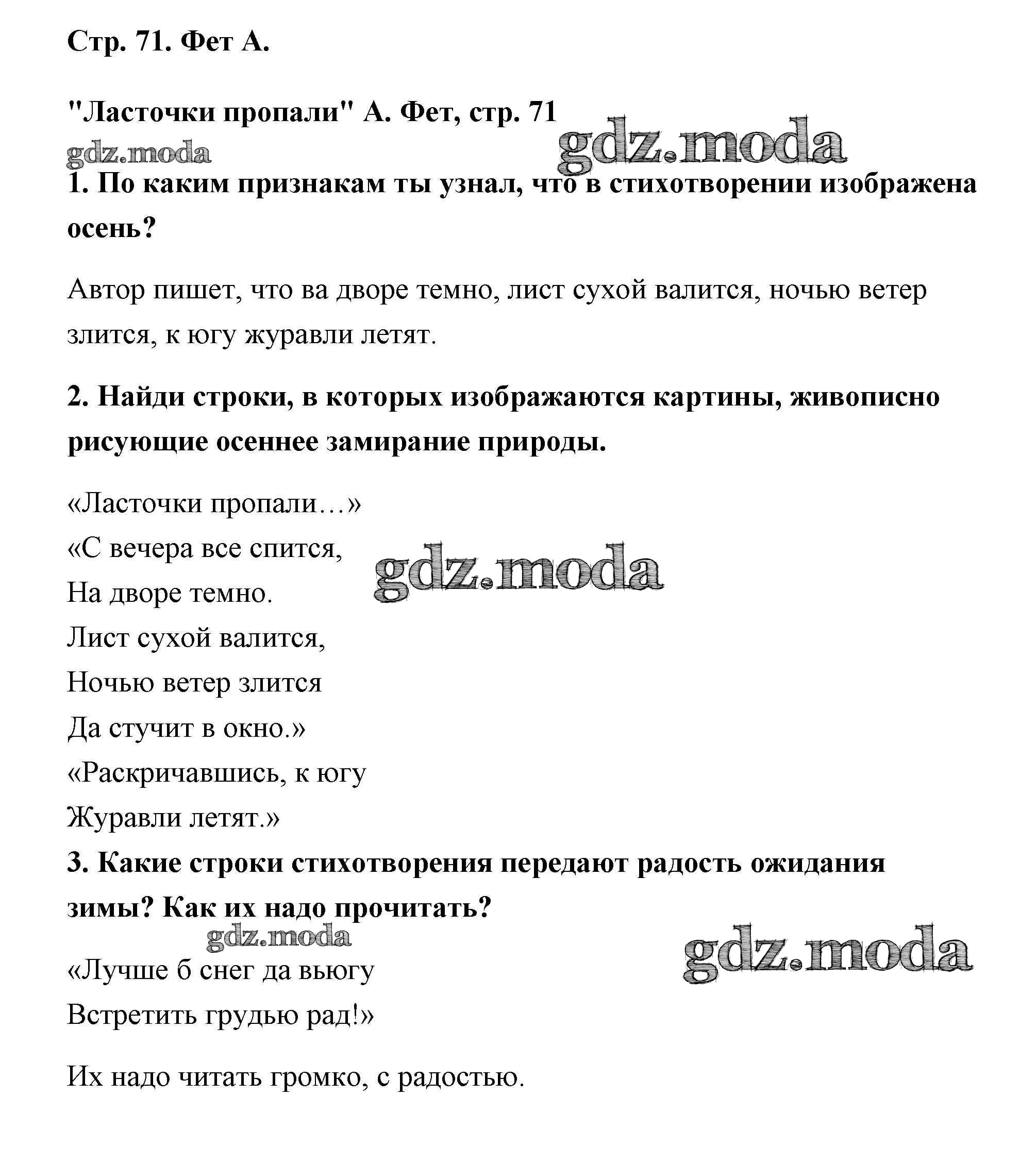 ГДЗ решение к заданию № 71 Литературное чтение 2 класс Климанова Просвещение 2018 Часть 1, Часть 2 ФГОС бесплатно на гдз.мода!