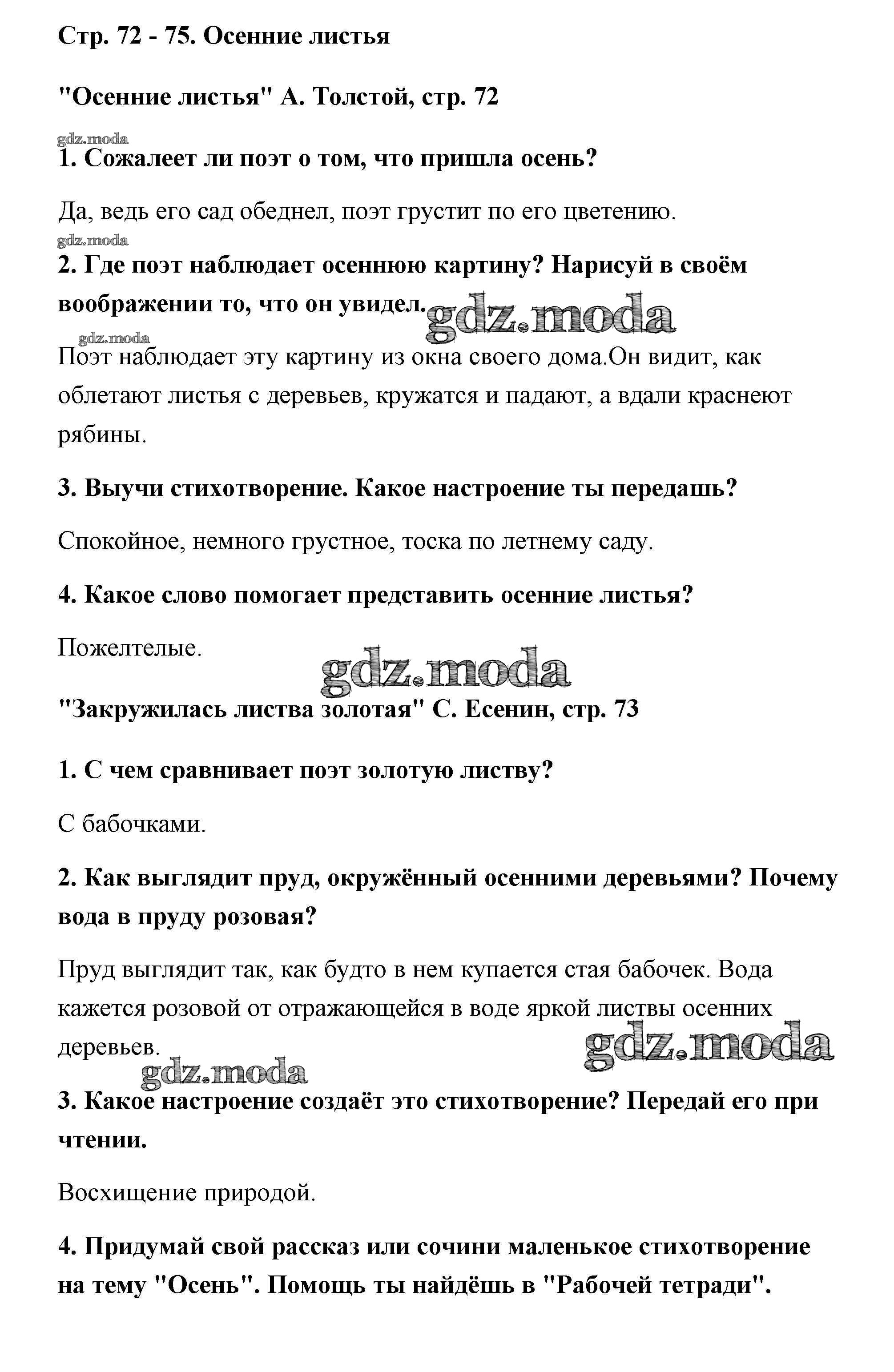 ОТВЕТ на задание № 72 Учебник по Литературе 2 класс Климанова Школа России